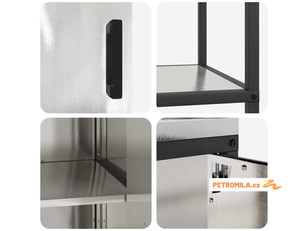 - Pevný ocelový rám Tato kuchyňská skříňka má odolnou konstrukci, co vydrží roky. Práškový lak ji chrání a dělá jí hezkou, i při každodenním používání. Ideální do kuchyní nebo garáže, vypadá skvěle a nabízí spolehlivé úložné prostory.