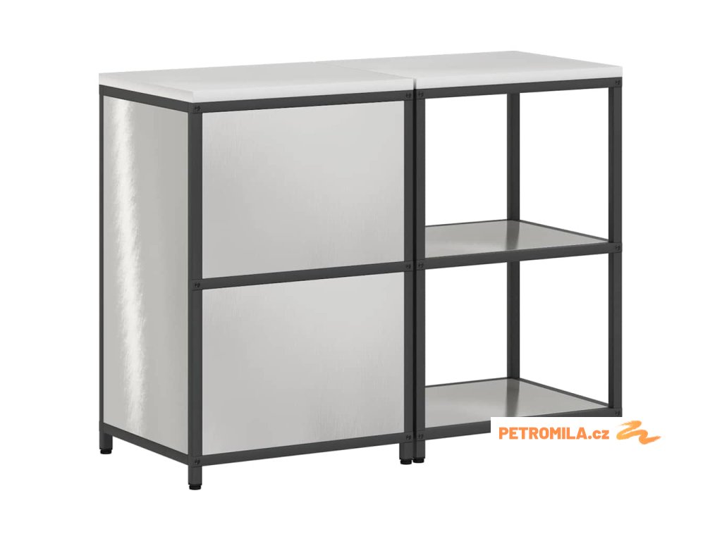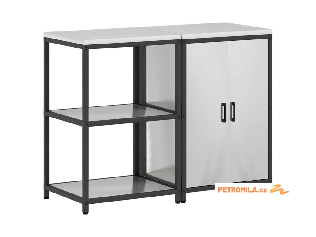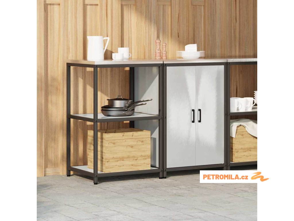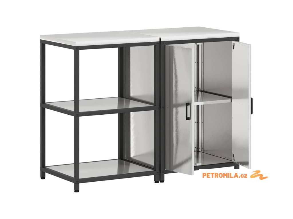 - Kovové police Uvnitř má této jednotky kovové police, které skvěle unesou těžší kuchyňské nebo nářaďové věci. Tyto police pomohou maximálně využít váš úložný prostor a udrží věci na bezpečném místě.