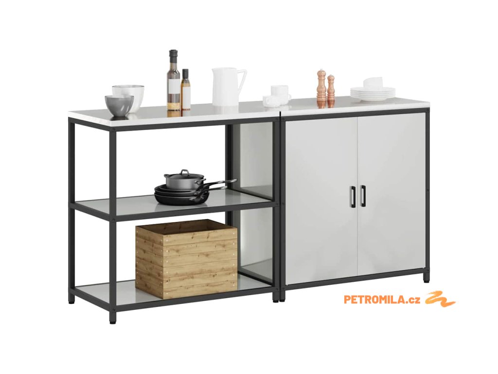 Kuchyňská skladovací sada s policí s úložištěm 2 pcs Bílá Ocel
