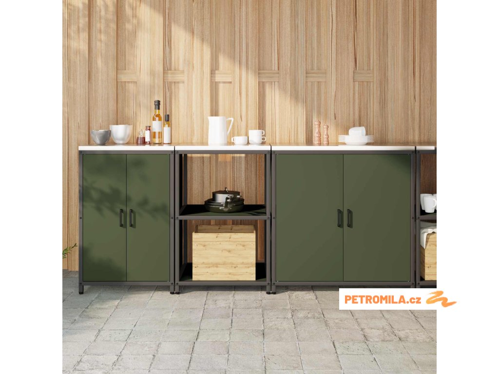Kuchyňská skladovací sada s policí 3 pcs Olivově zelená