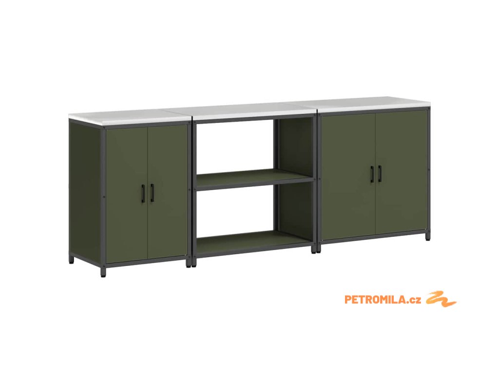 Kuchyňská skladovací sada s policí 3 pcs Olivově zelená Ocel