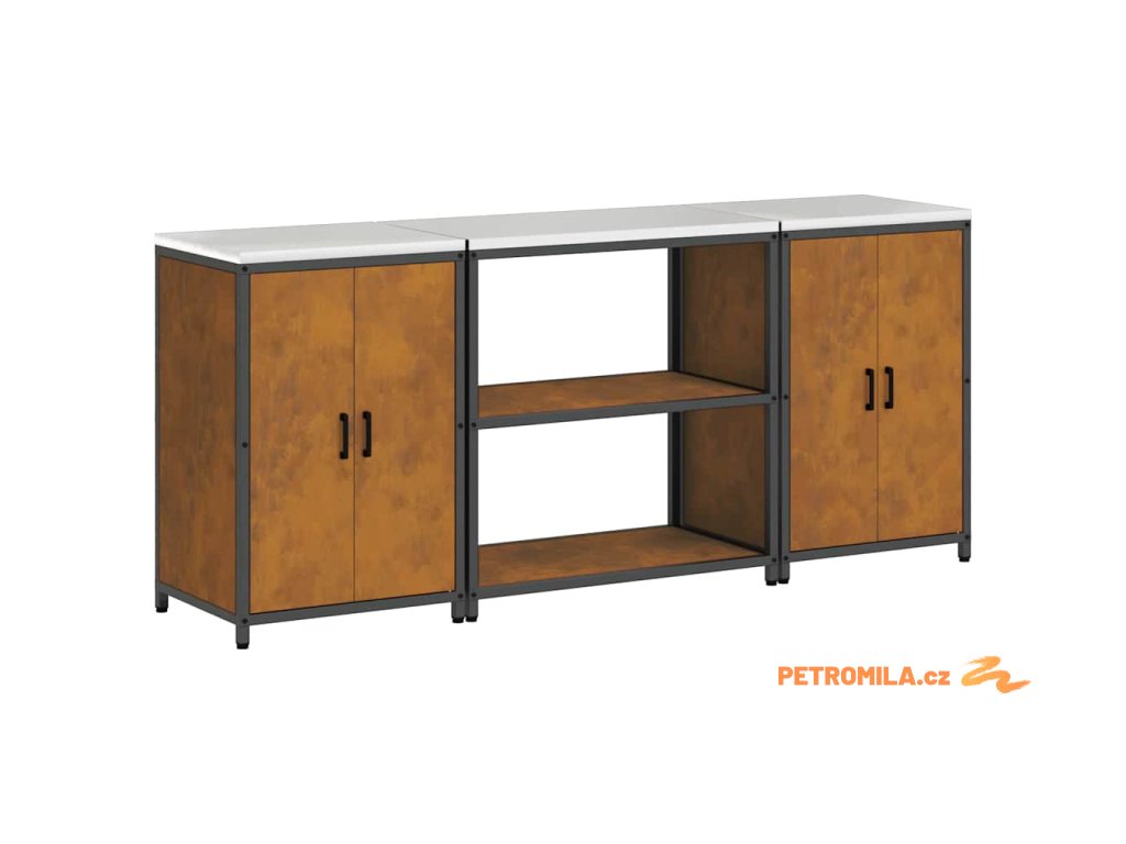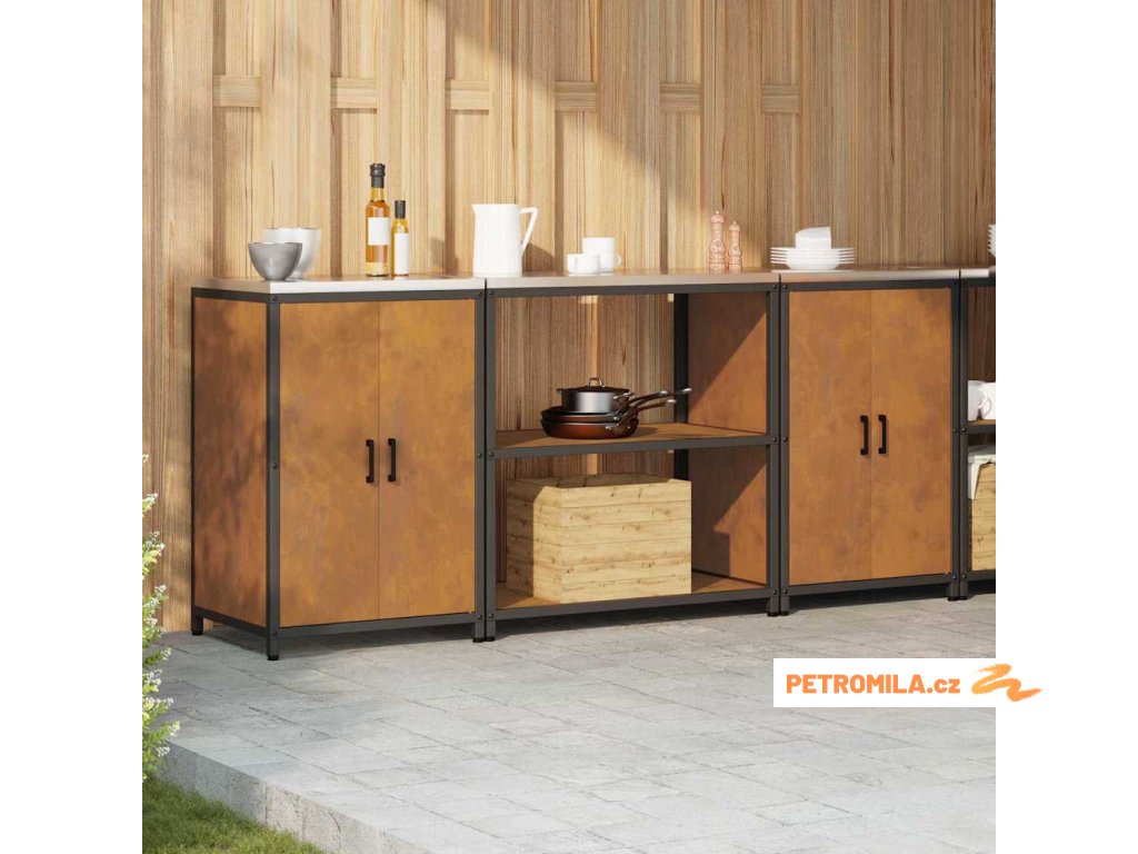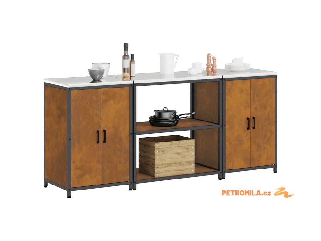 Kuchyňská skladovací sada s policí se dveřmi 3 pcs Rezavá Ocel