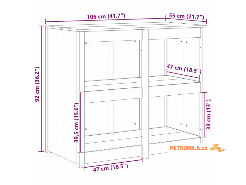 - Celkové rozměry: 106 x 55 x 92 cm (D x Š x V)