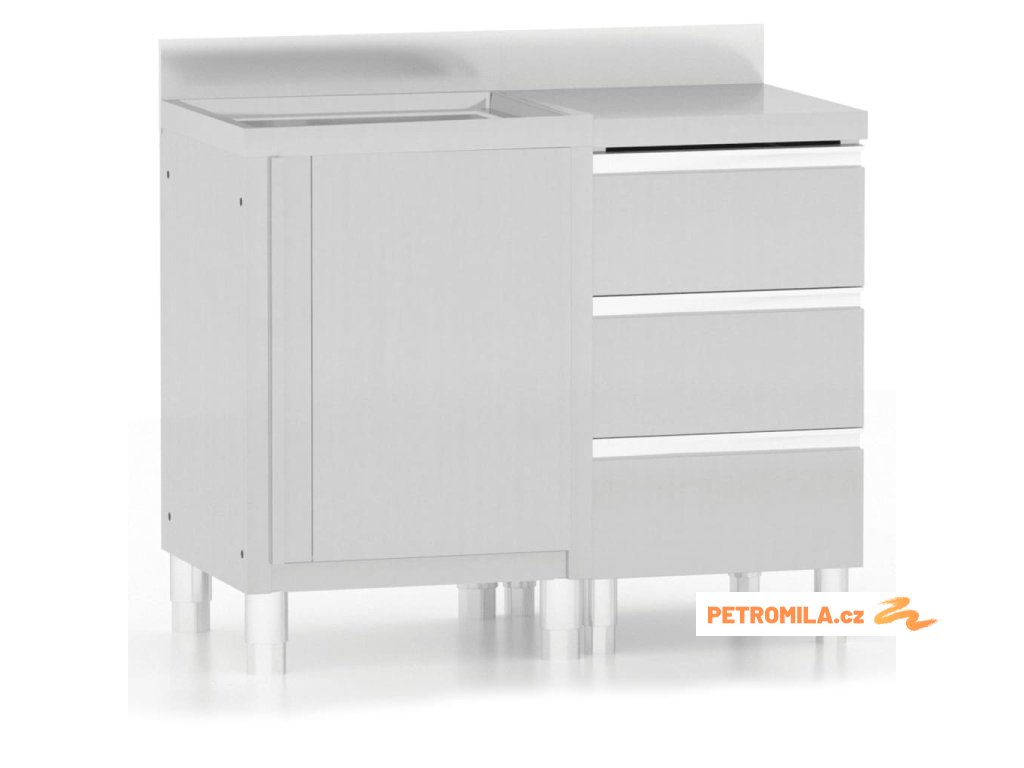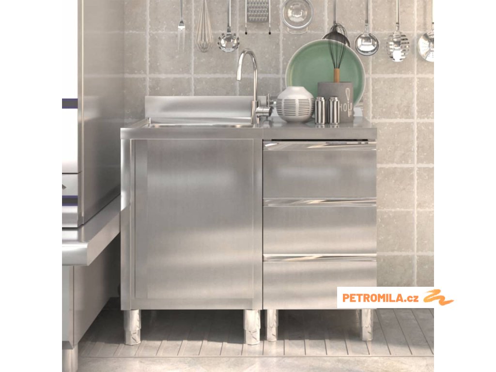 Tato úložní skříňka je vyrobená z kvalitní nerezové oceli a je robustní, antikorozní a snadno se čistí. Skříňka poskytuje dostatek úložného prostoru pro úklidové vybavení a příslušenství. Nastavitelné nožičky umožňují vyrovnat skříňku i na nerovné ploše. Součástí skříňky je 10 cm vysoký zadní lem a otvor na vodní trubku.