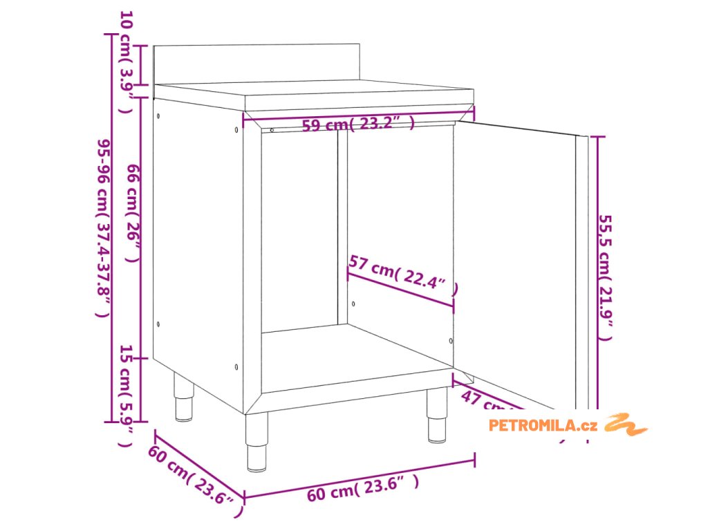 - Rozměry: 60 x 60 x (95–96) cm (D x Š x V)