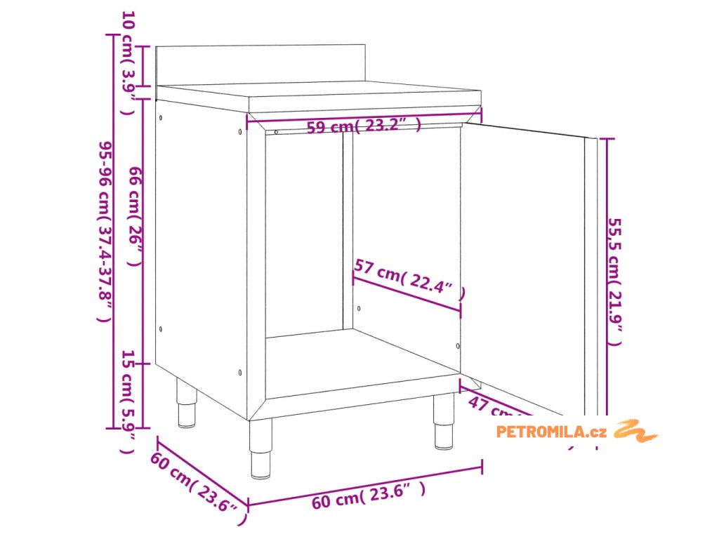 Tato úložní skříňka je vyrobená z kvalitní nerezové oceli a je robustní, antikorozní a snadno se čistí. Skříňka poskytuje dostatek úložného prostoru pro úklidové vybavení a příslušenství. Nastavitelné nožičky umožňují vyrovnat skříňku i na nerovné ploše. Součástí skříňky je 10 cm vysoký zadní lem a otvor na vodní trubku.