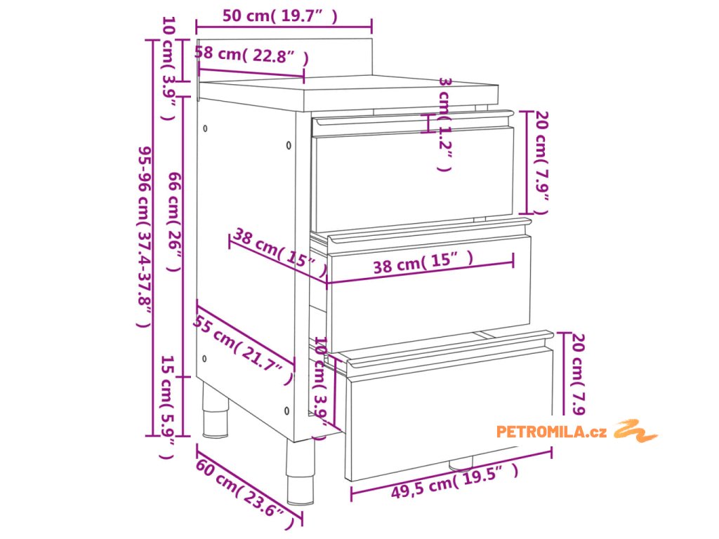 - Rozměry: 50 x 60 x (95–96) cm (Š x H x V)