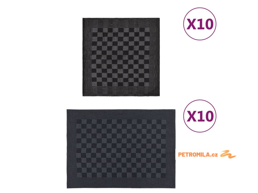 Kuchyňské utěrky 20 ks černé a šedé bavlna