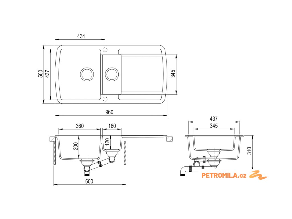 - Rozměry malého dřezu: 160 x 345 x 120 mm (D x Š x H)