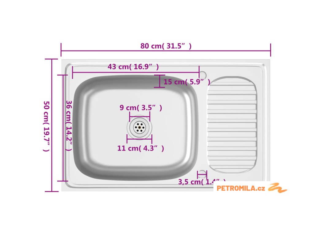 Dřez je vyroben z nerezové oceli, takže výborně vzdoruje teplu, poškrábání a nárazům a také se snadno čistí. Dřez s extra silnými bočními panely je určený pro montáž shora na skříňku. Praktický odkapávač slouží k odkládání umytého nádobí. Je vybaven odtokovým potrubím a otvory na vodovodní baterii na obou stranách, takže se může umístit na jakoukoli stranu.Jelikož je dřez plně oboustranný, lze jej umístit na levou, nebo na pravou stranu.