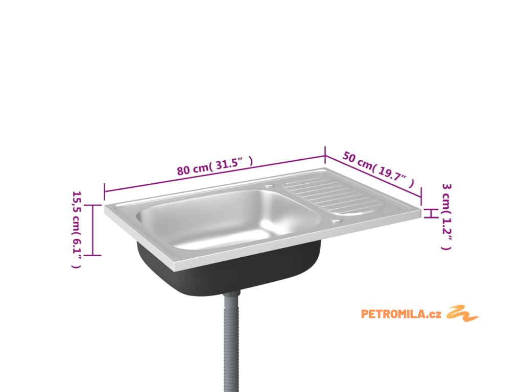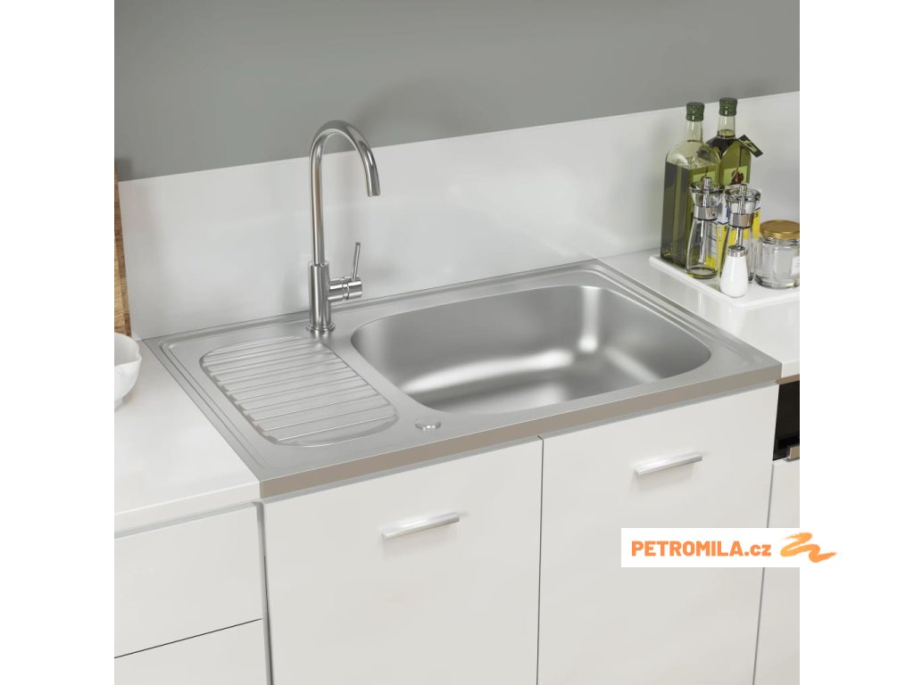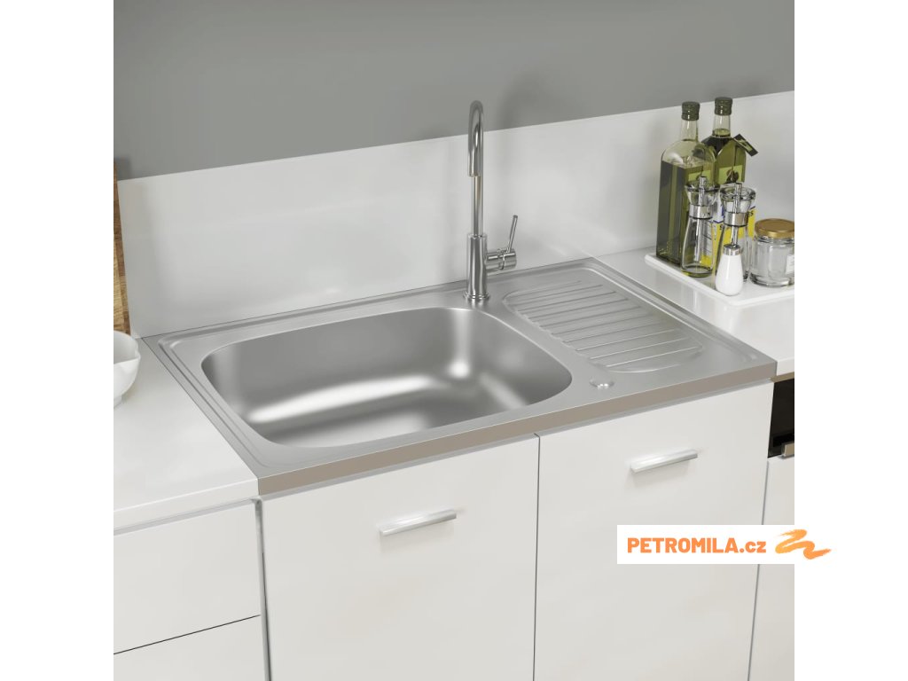 Kuchyňský dřez s odtokem stříbrný 800x500x155 mm nerezová ocel