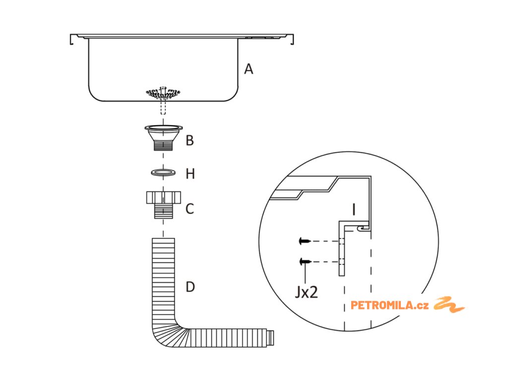 - Kuchyňský dřez je vhodný pro instalaci shora na desku.