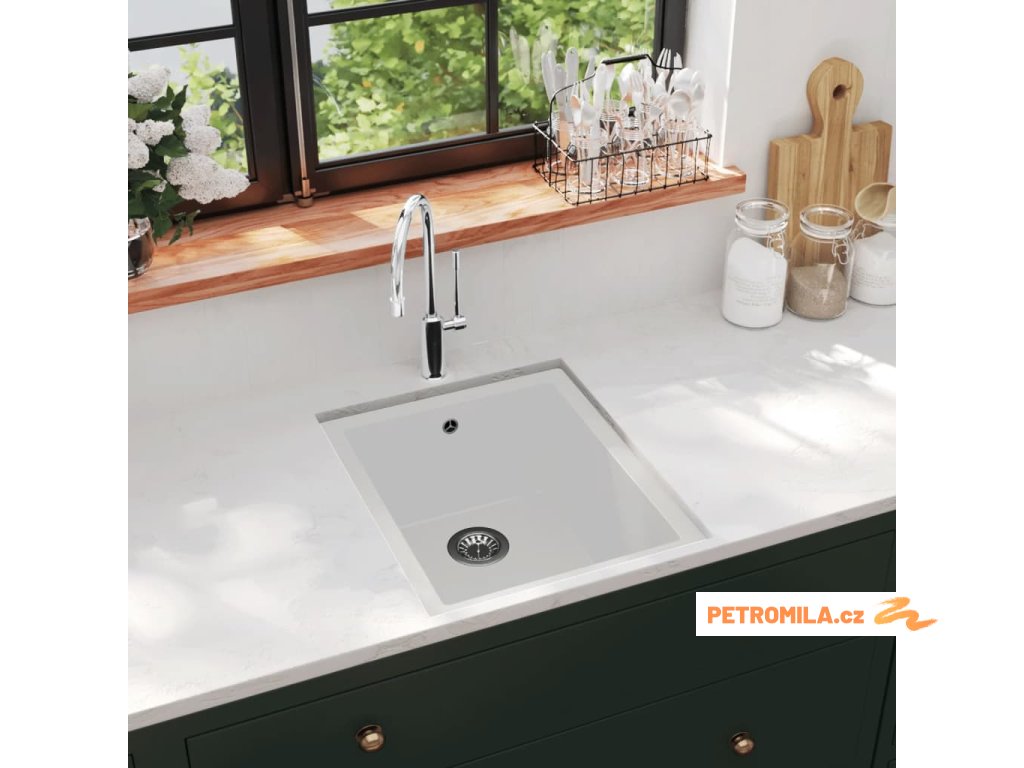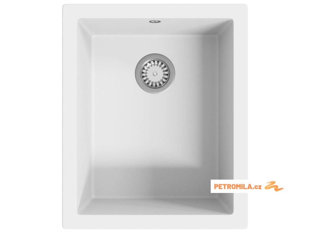 Dřez je vyroben ze žuly, takže výborně vzdoruje teplu, poškrábání a nárazům a také se snadno čistí. Součástí je také sítko pro snadné odstranění nečistot. Přepadový otvor má průměr 90 mm.