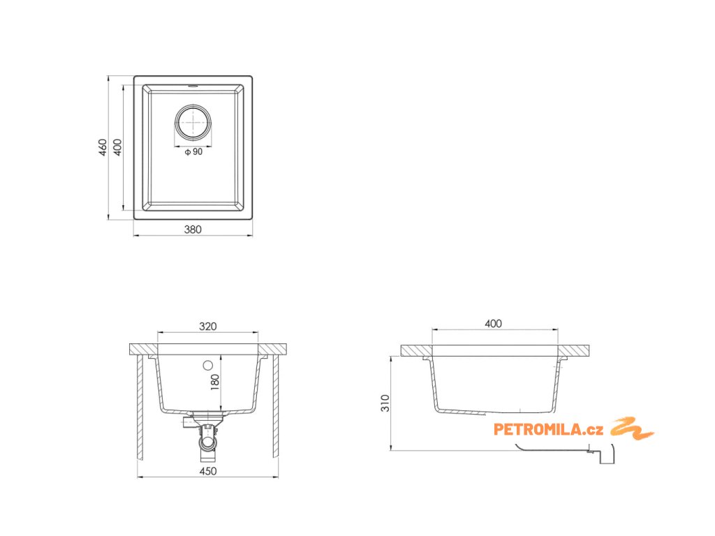 - Rozměry dřezu: 320 x 400 x 180 mm (Š x H x V)
