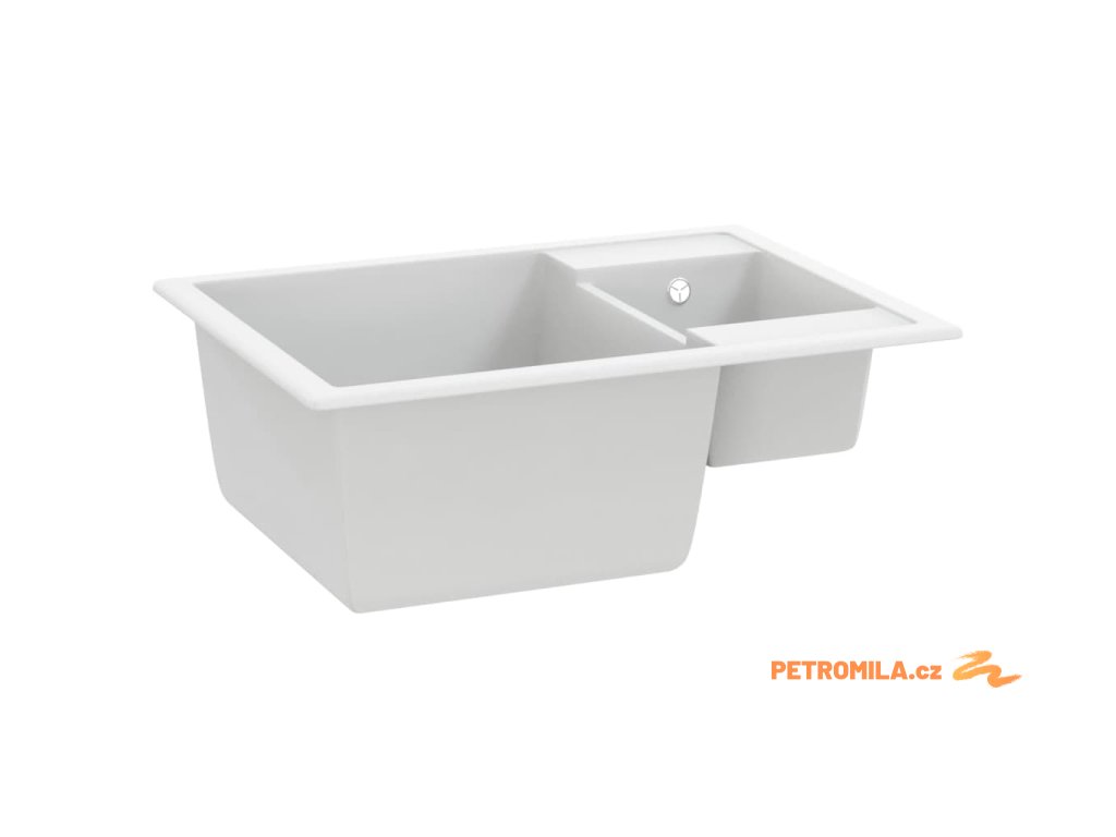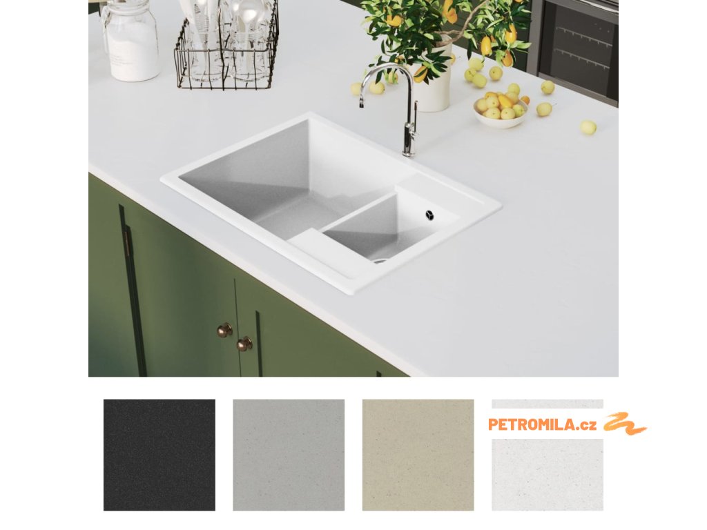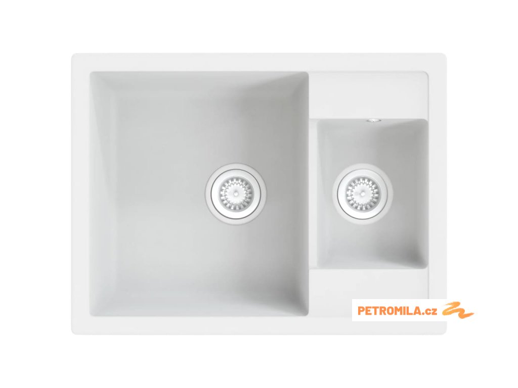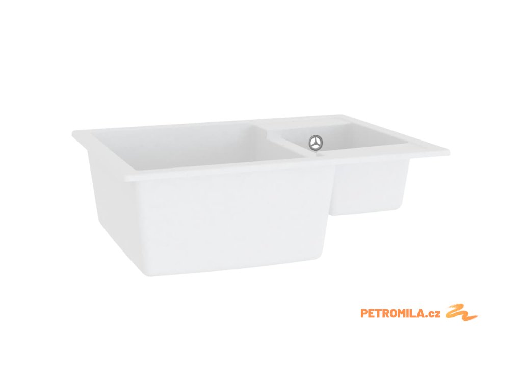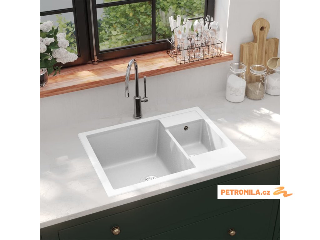 Kuchyňský dřez s přepadem otvorem dvojitý bílý žula