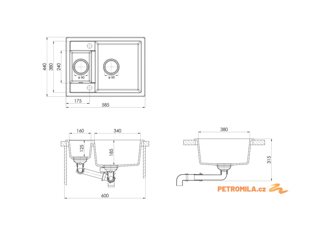 Dřez je vyrobený z kvalitní žuly, která je odolná vůči teplu, poškrábání i nárazům a snadno se čistí. Součástí balení je rovněž sítko na odpad pro snadné odstranění nečistot. Přepadový otvor má průměr 90 mm.