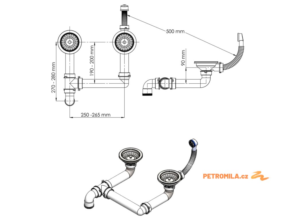 - Předvrtaný otvor na vodovodní baterii: 35 mm