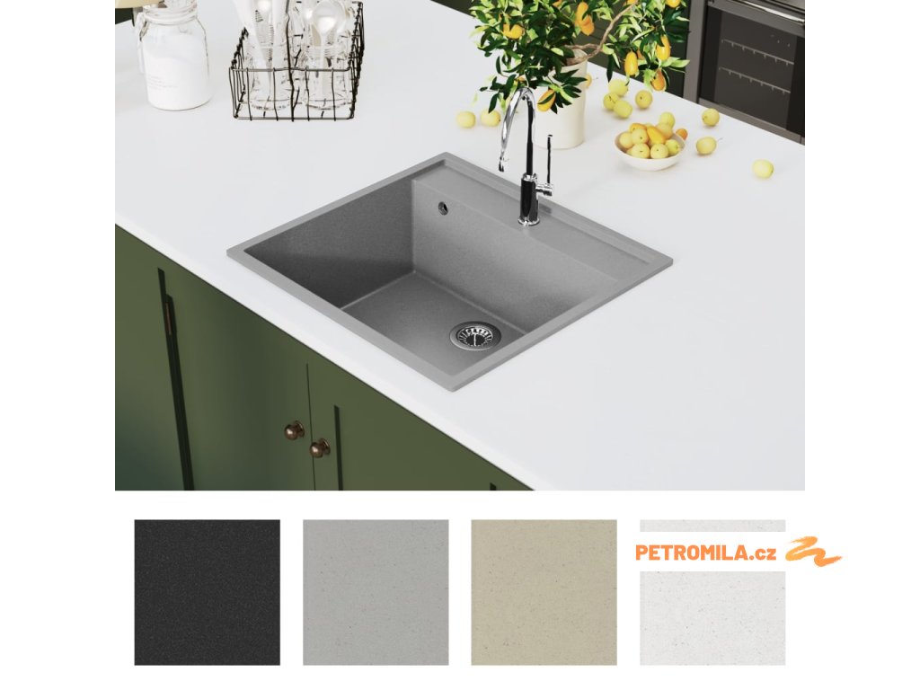 Dřez je vyrobený z kvalitní žuly, která je odolná vůči teplu, poškrábání i nárazům a snadno se čistí. Součástí balení je rovněž sítko na odpad pro snadné odstranění nečistot. Přepadový otvor má průměr 90 mm.