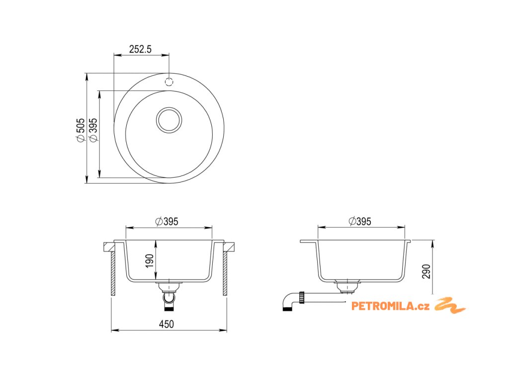 - Rozměry umyvadla: 395 x 395 x 190 mm (D x Š x H)