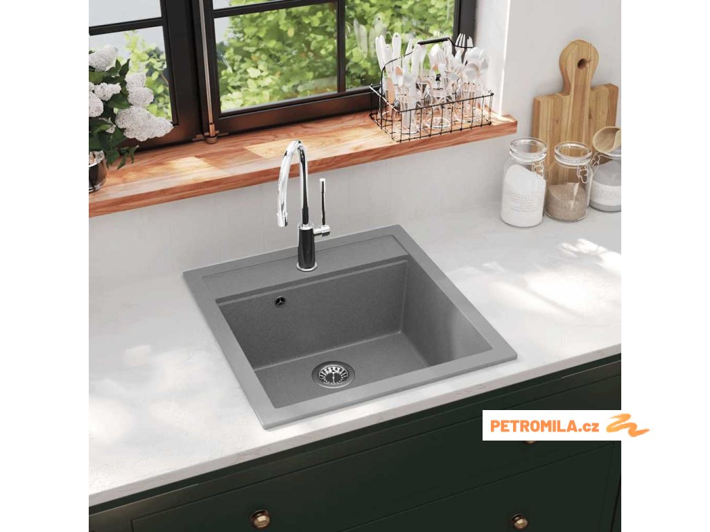 Kuchyňský dřez single žulový šedý