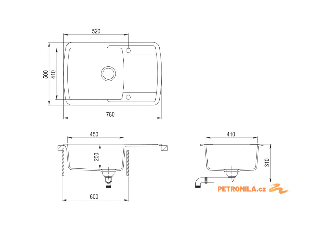 - Rozměry umyvadla: 450 x 410 x 200 mm (D x Š x H)