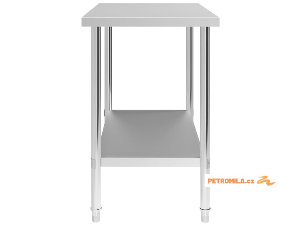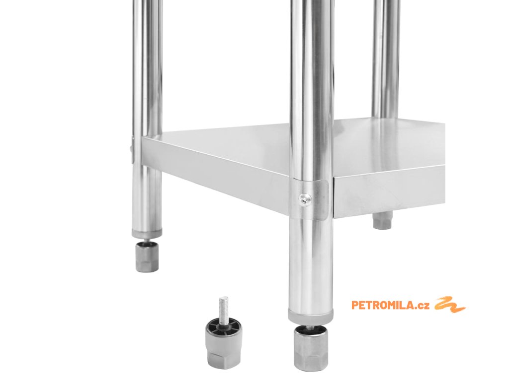 Tento gastronomický pracovní stůl je vyrobený z nerezové oceli vysoké kvality a je určený pro každodenní a velmi dlouhodobé použití. Ve spodní části je police, kde si můžete zorganizovat váš úložný prostor. Nohy s funkcí vyrovnávání mají neklouzavý design, který zaručuje skvělou stabilitu a zároveň chrání podlahu.