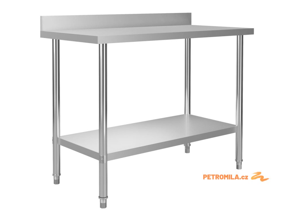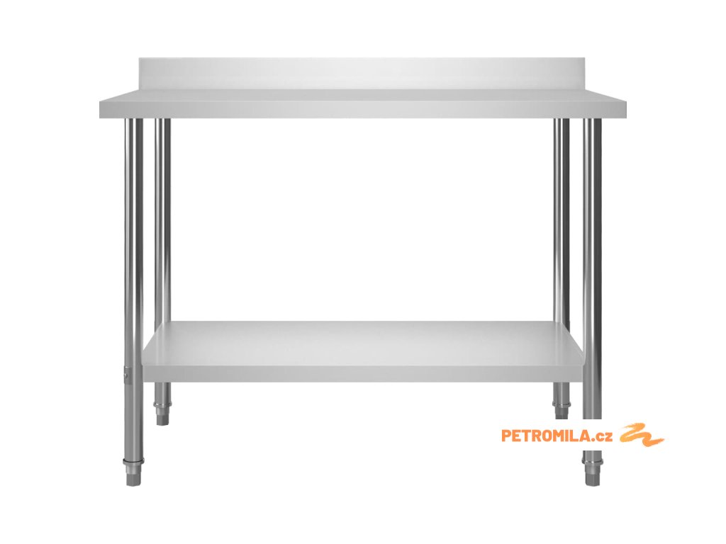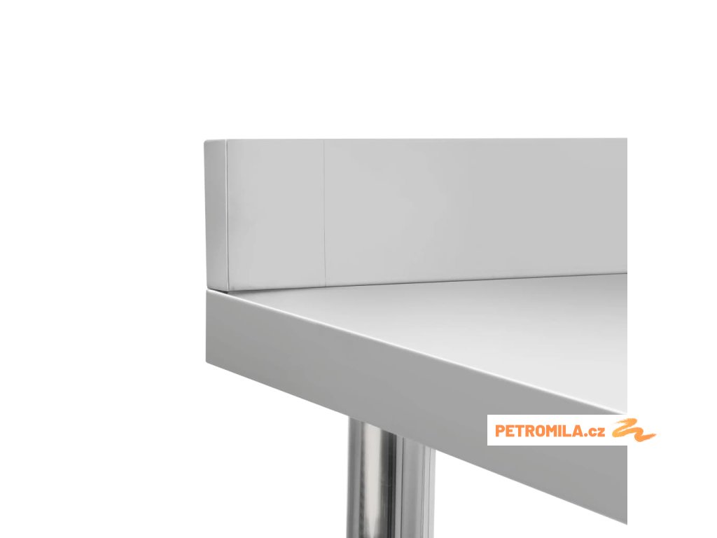 Stůl je vyrobený z nerezové oceli vysoké kvality, a tak vydrží i každodenní náročné používání. Snadno se také čistí. Navíc je vybavený praktickou zadní obrubou, která zpříjemňuje jeho použití. Ve spodní části se nachází police, kde si můžete zorganizovat váš úložný prostor. Nohy s funkcí vyrovnávání mají neklouzavý design, který zaručuje skvělou stabilitu a zároveň chrání podlahu.