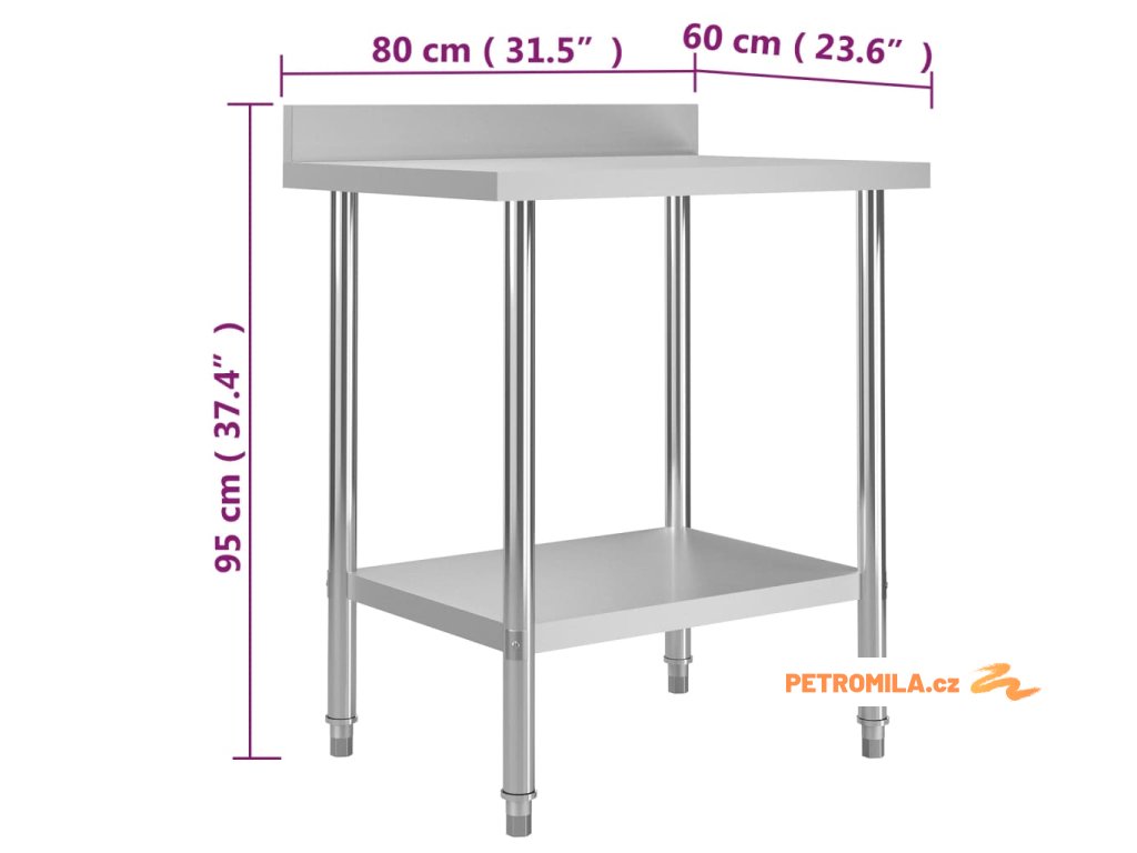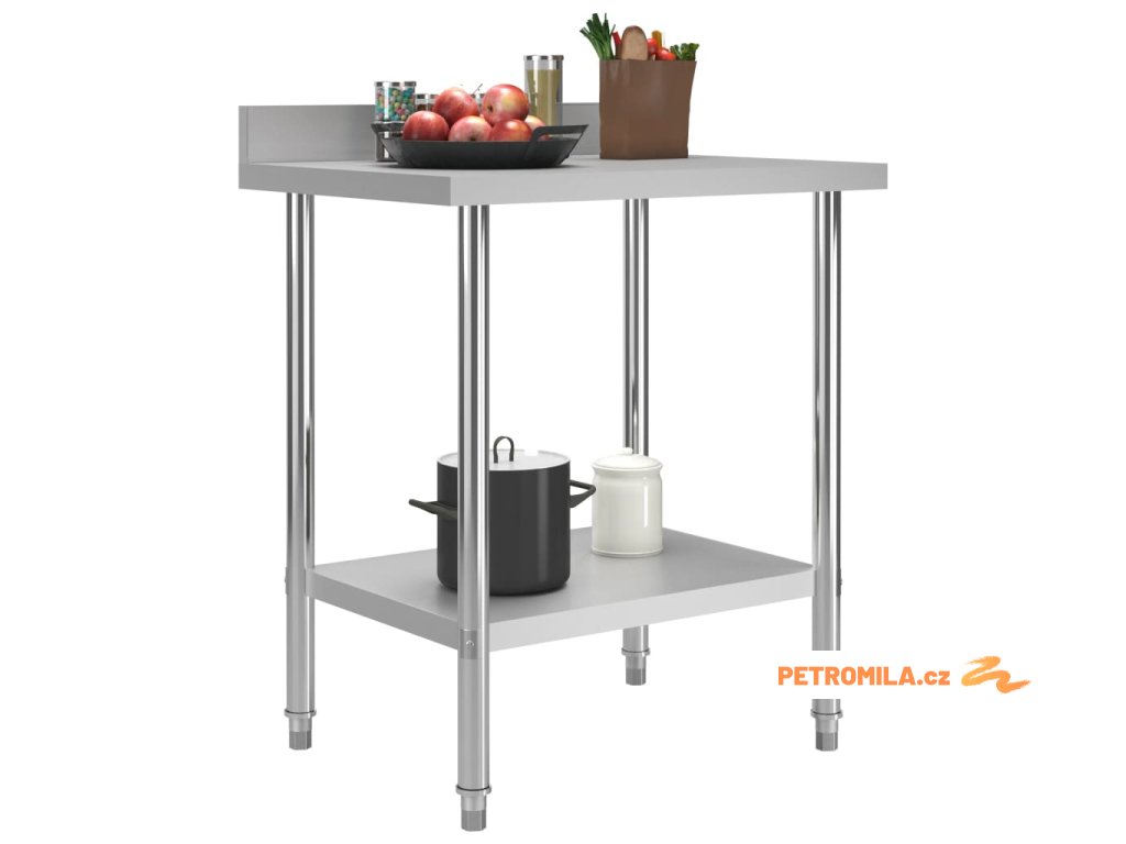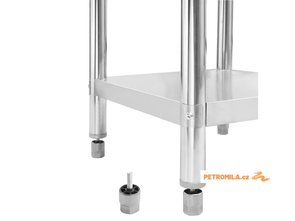 Stůl je vyrobený z nerezové oceli vysoké kvality, a tak vydrží i každodenní náročné používání. Snadno se také čistí. Navíc je vybavený praktickou zadní obrubou, která zpříjemňuje jeho použití. Ve spodní části se nachází police, kde si můžete zorganizovat váš úložný prostor. Nohy s funkcí vyrovnávání mají neklouzavý design, který zaručuje skvělou stabilitu a zároveň chrání podlahu.