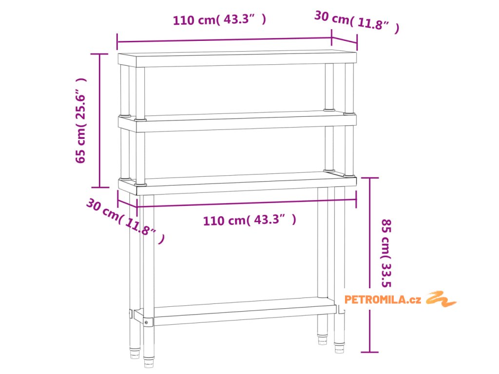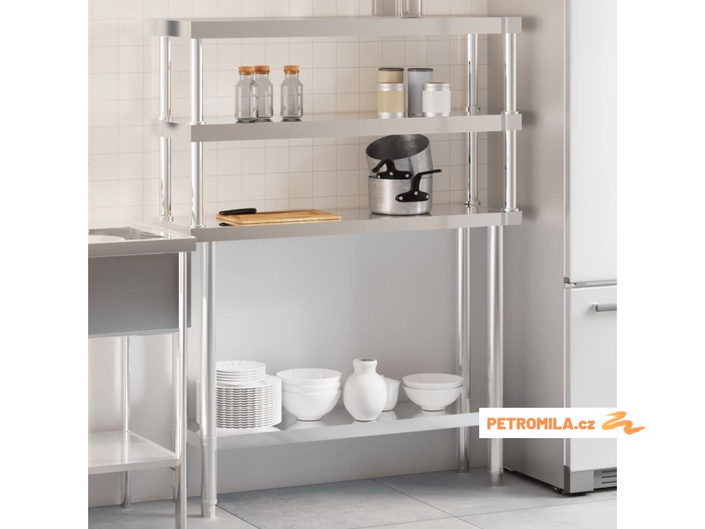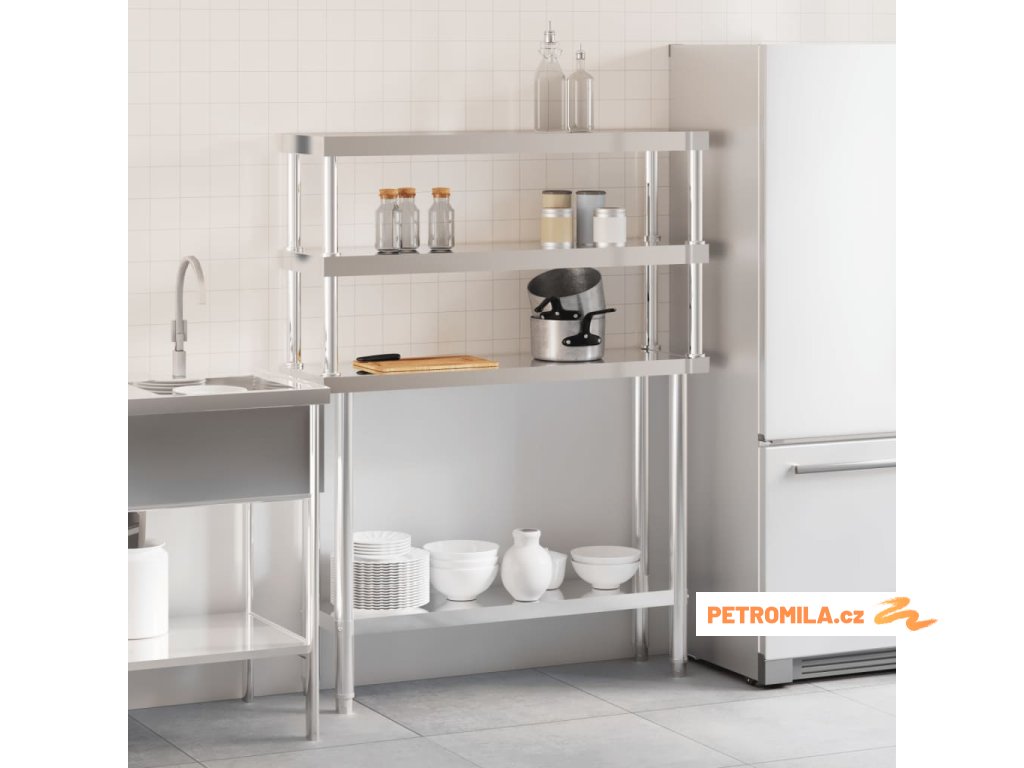 Kuchyňský pracovní stůl s horní policí 110 x 30 x 150 cm nerez