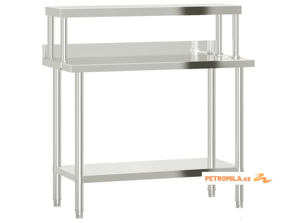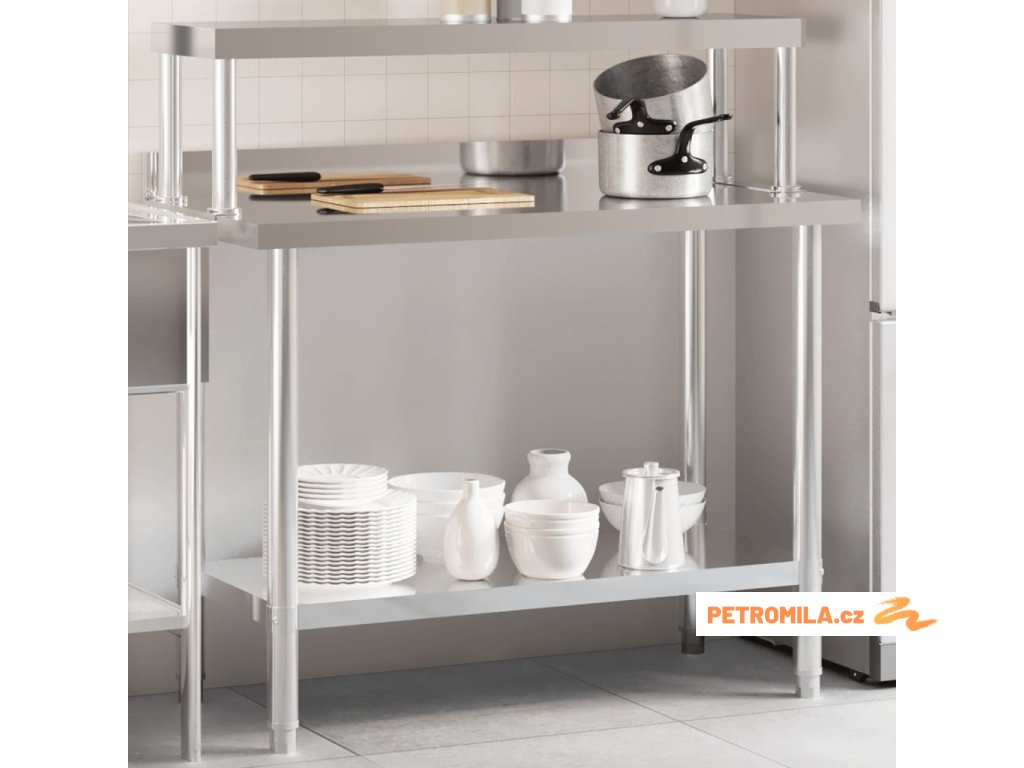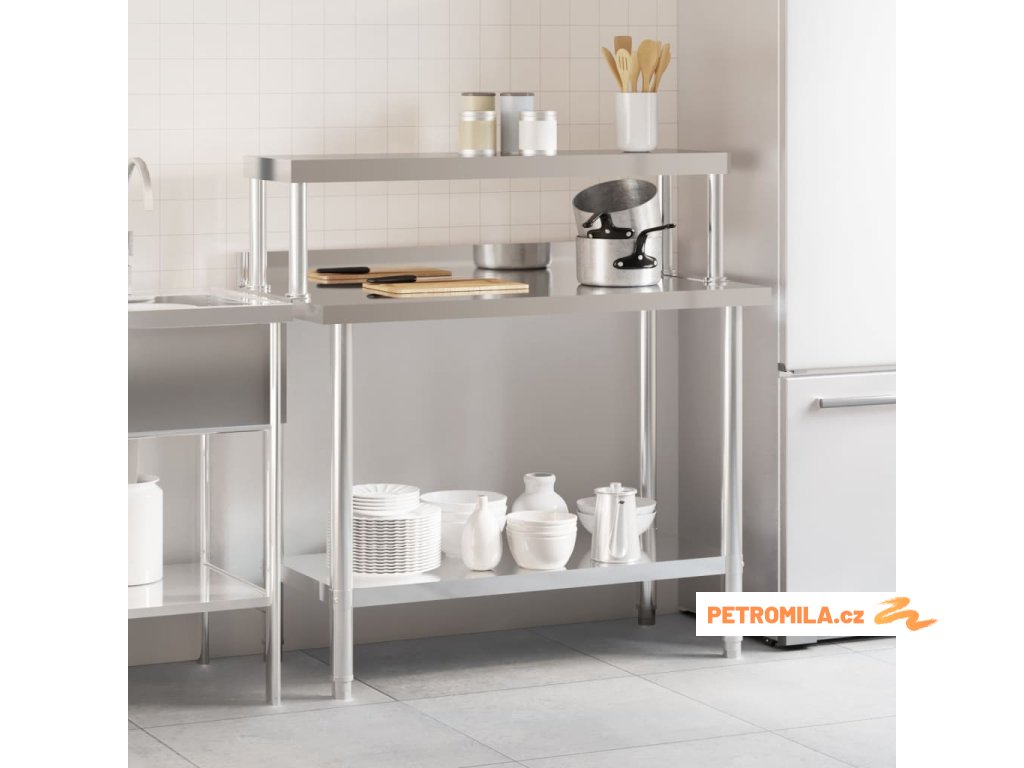 Kuchyňský pracovní stůl s horní policí 110 x 55 x 120 cm nerez