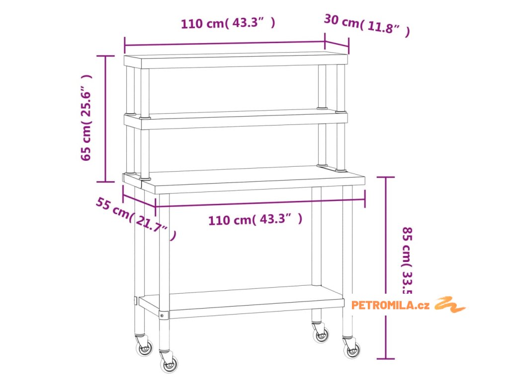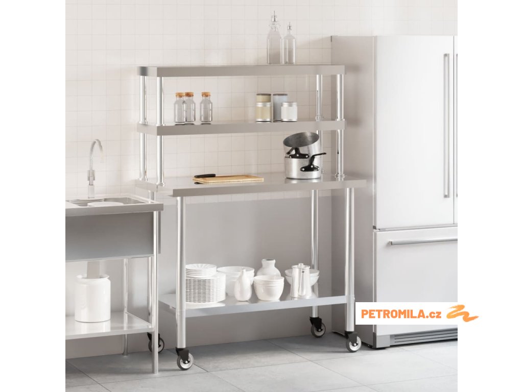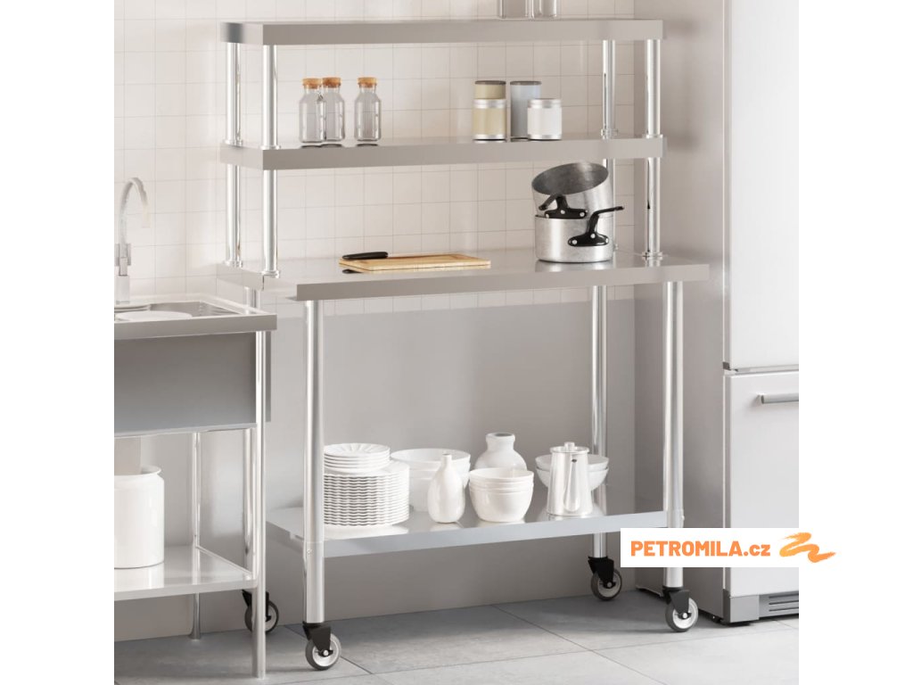 Kuchyňský pracovní stůl s horní policí 110 x 55 x 150 cm nerez