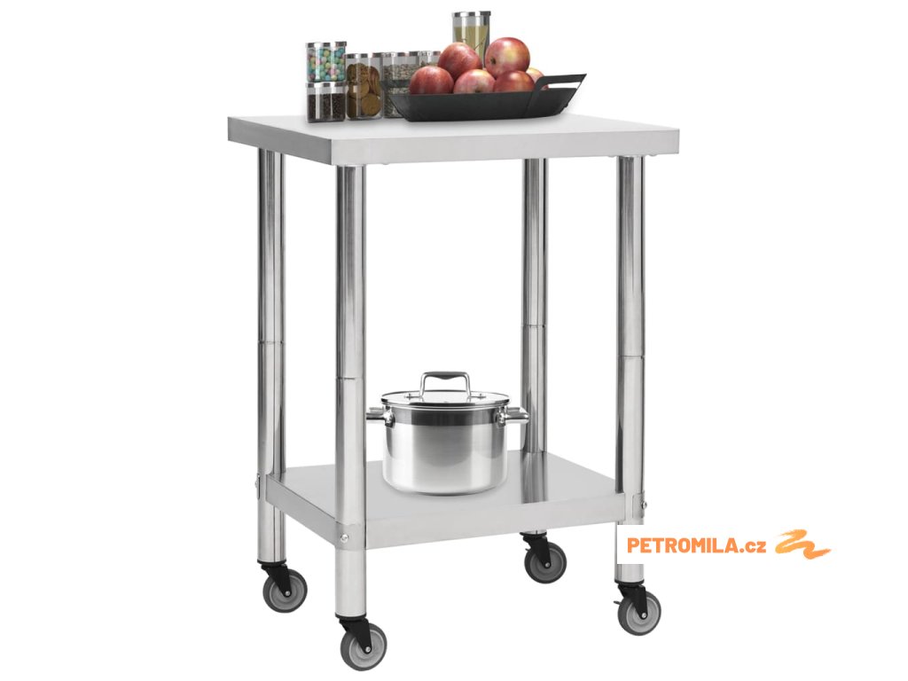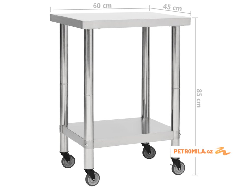 Kuchyňský pracovní stůl s kolečky 60 x 45 x 85 cm nerezová ocel