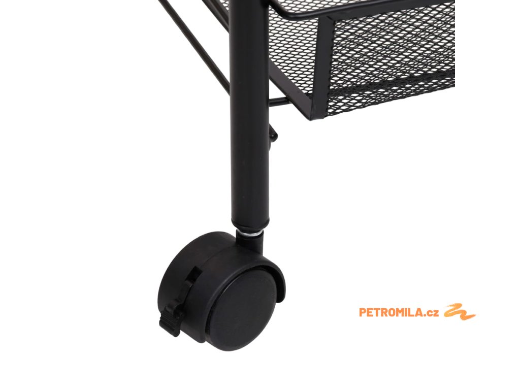 Tento domácí vozík má železnou konstrukci, takže je pevný a odolný. Prostorově úsporný vozík má 4 kolečka, z toho 2 jsou opatřena brzdou, pro snadné přesouvání a aretaci. Košíky jsou pevné a odnímatelné a poskytují další úložný prostor pro maximální využití místnosti. Vozík je ideální pro uložení hraček, klíčů, jídla atd.