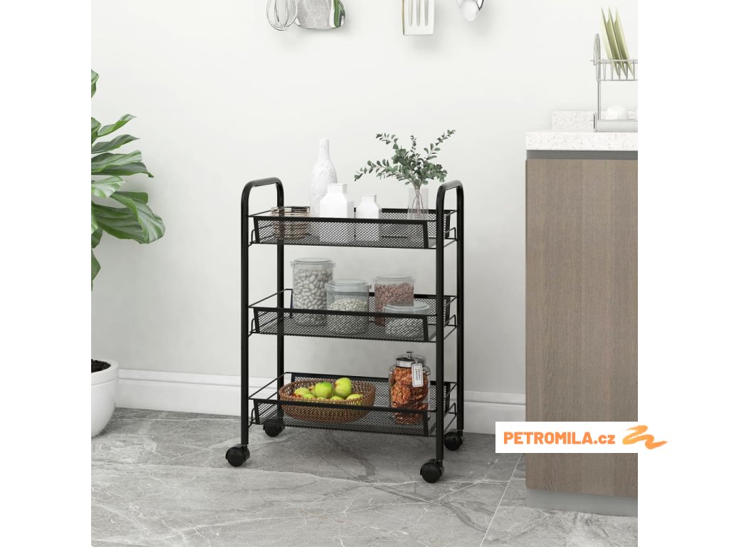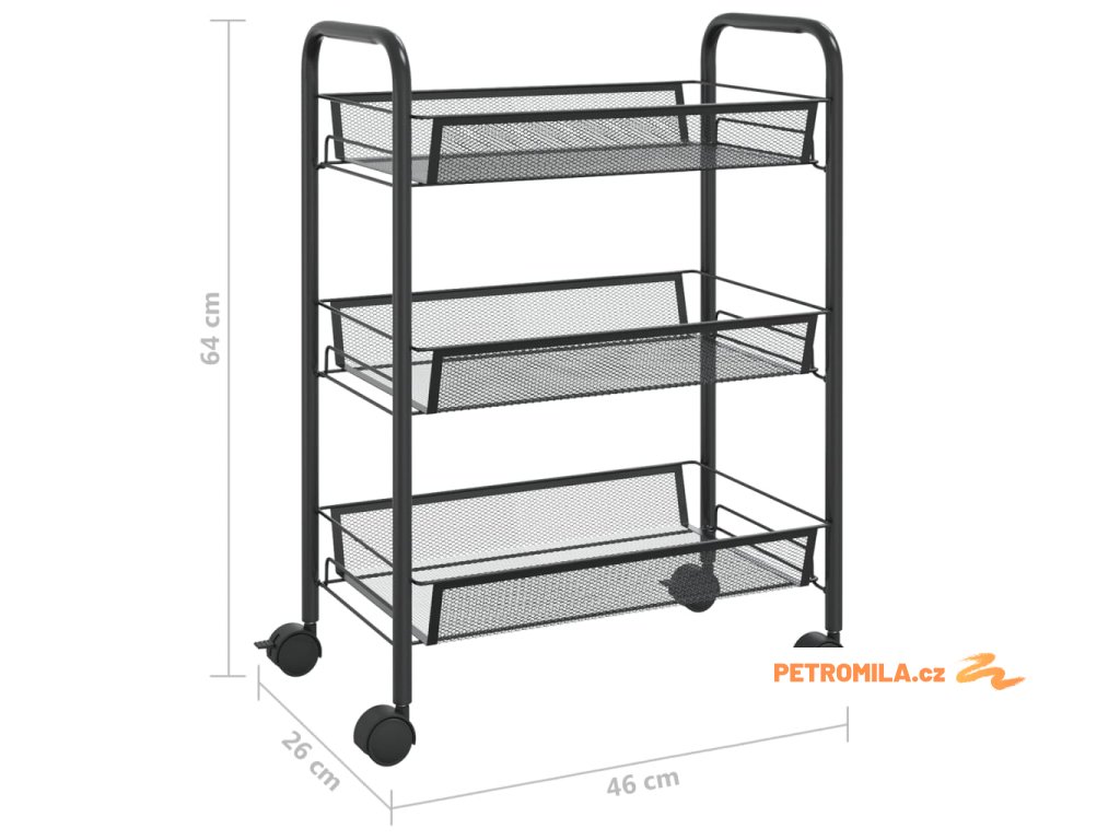 Kuchyňský vozík se 3 patry černý 46 x 26 x 64 cm železo
