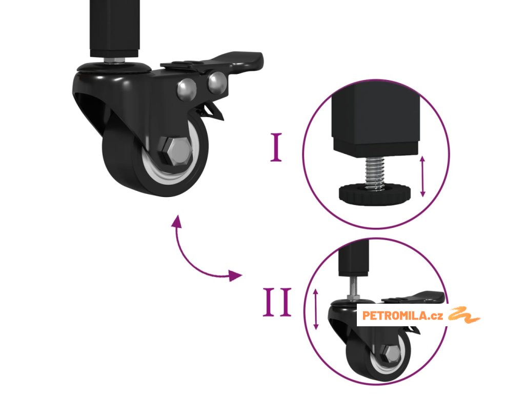 - Flexibilní instalace: Tento kuchyňský úložný vozík lze použít dvěma způsoby. Můžete jej umístit na podlahu pomocí nastavitelných nožiček pro zajištění stability na nerovném povrchu nebo připevnit kolečka umožňující snadný pohyb.