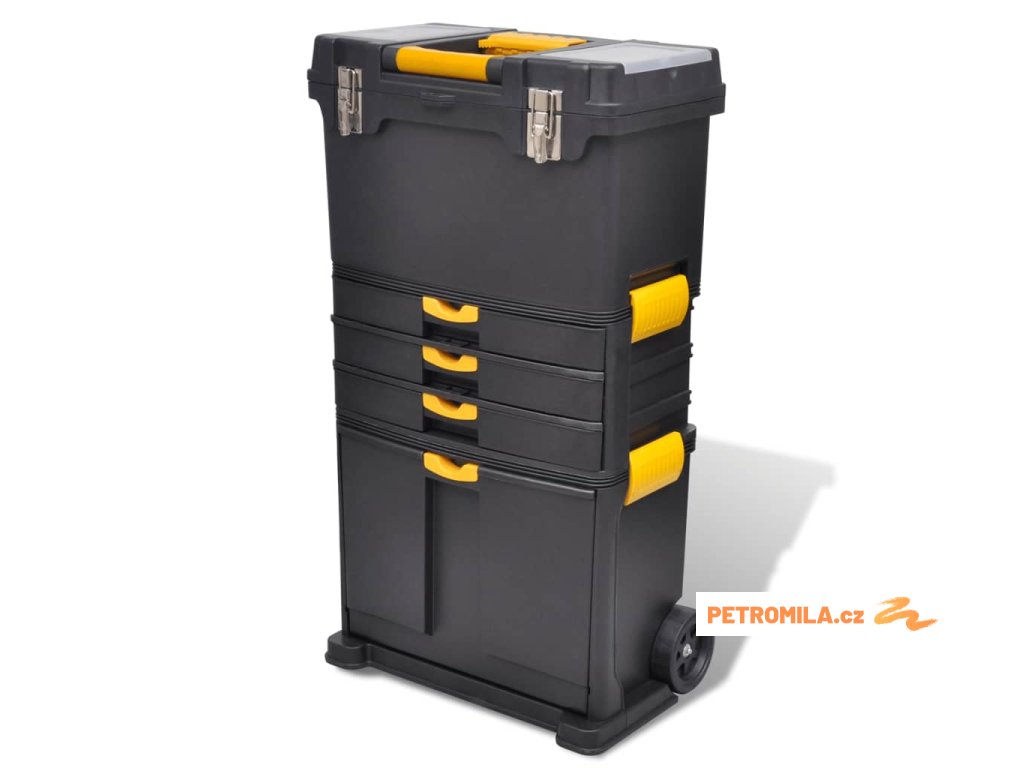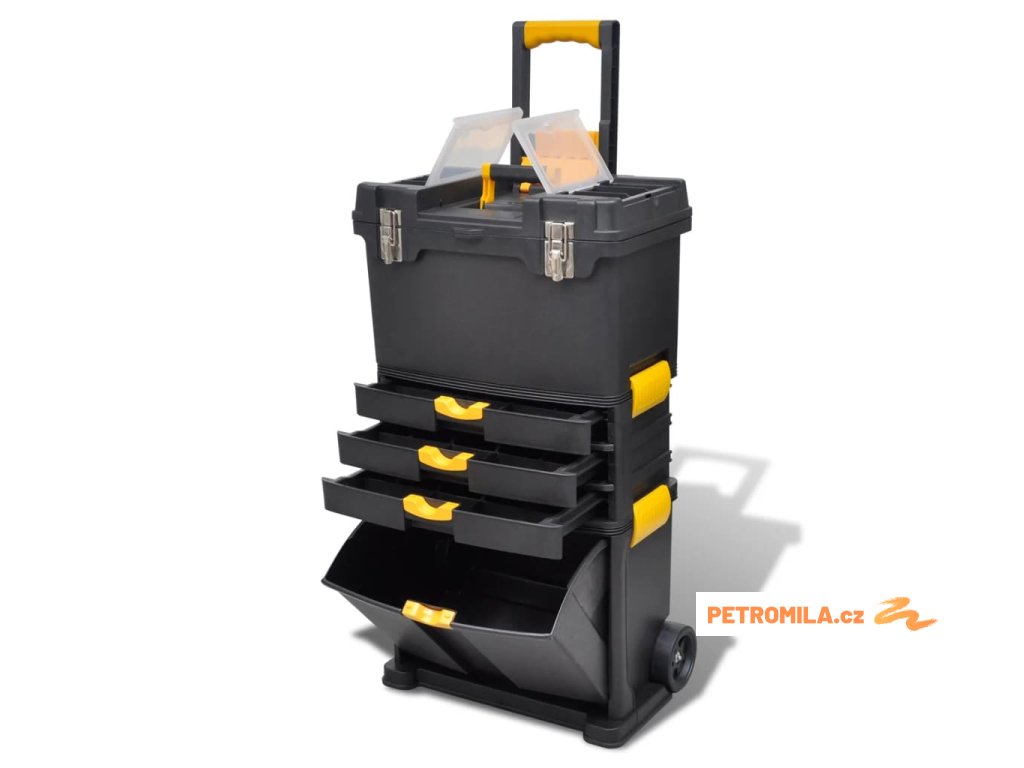 Velmi kvalitní kufr na nářadí, vybavený 2 otočnými kolečky a rukojetí, je perfektní volba pro bezpečné a pohodlné převážení a skladování vašeho nářadí. Náš kufr na nářadí má tři hlavní sekce, horní a spodní přihrádku a střední sekci se 3 zásuvkami. Kufr je velmi prostorný, takže si do něj snadno uložíte a uspořádáte velké množství nářadí a nástrojů, které zároveň ochráníte pro dlouholetou životnost.