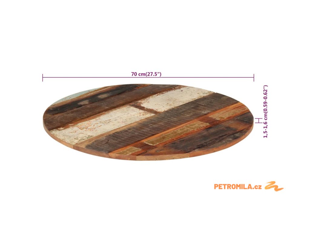 Kulatá stolní deska 70 cm 15–16 mm masivní recyklované dřevo