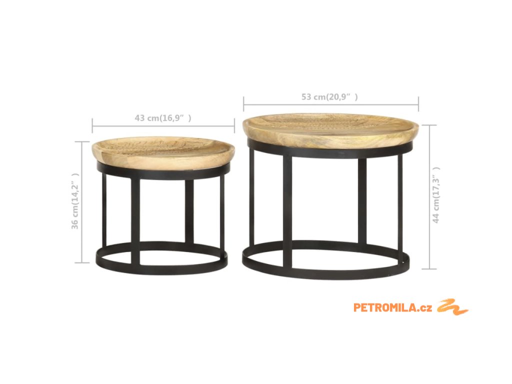 Kulaté odkládací stolky 2 ks masivní mangovníkové dřevo a ocel