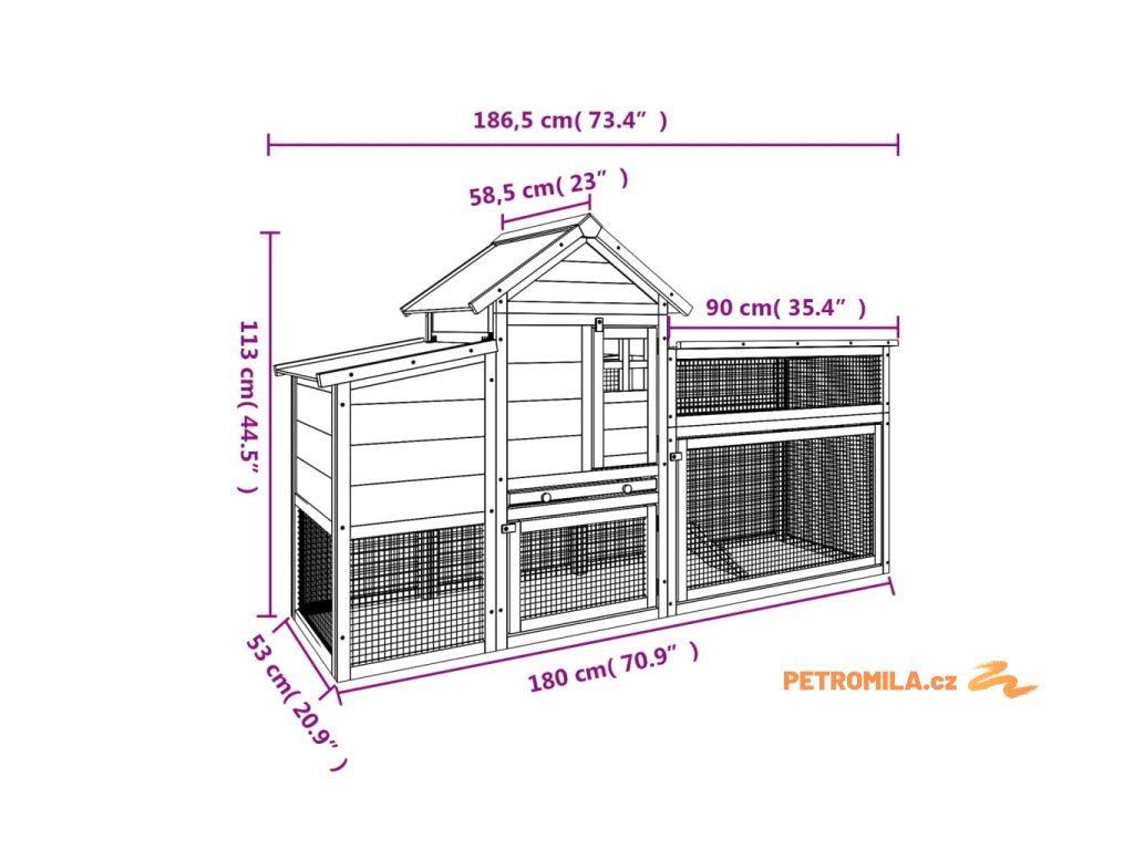 Kurník 186,5 x 58,5 x 113 cm masivní borové dřevo