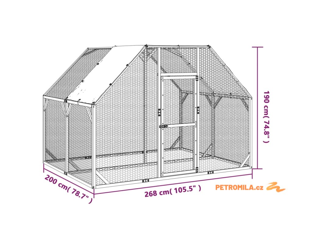 Kurník 268 x 200 x 190 cm impregnované masivní borové dřevo