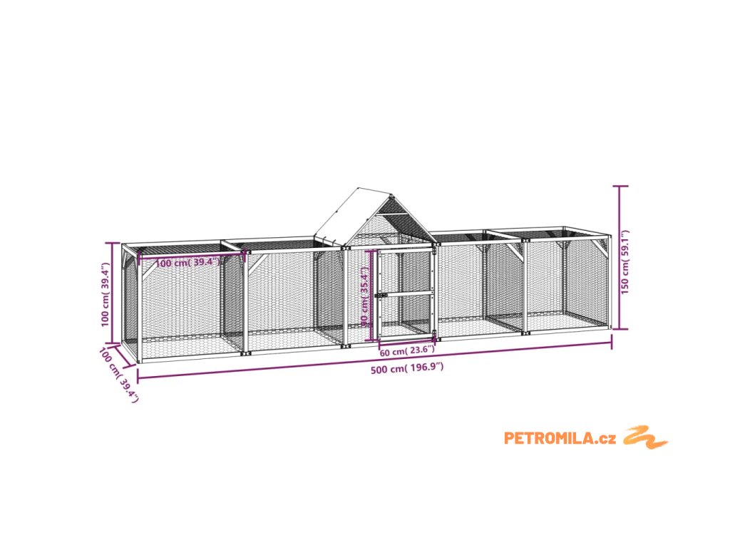 Kurník 500 x 100 x 150 cm impregnované masivní borové dřevo