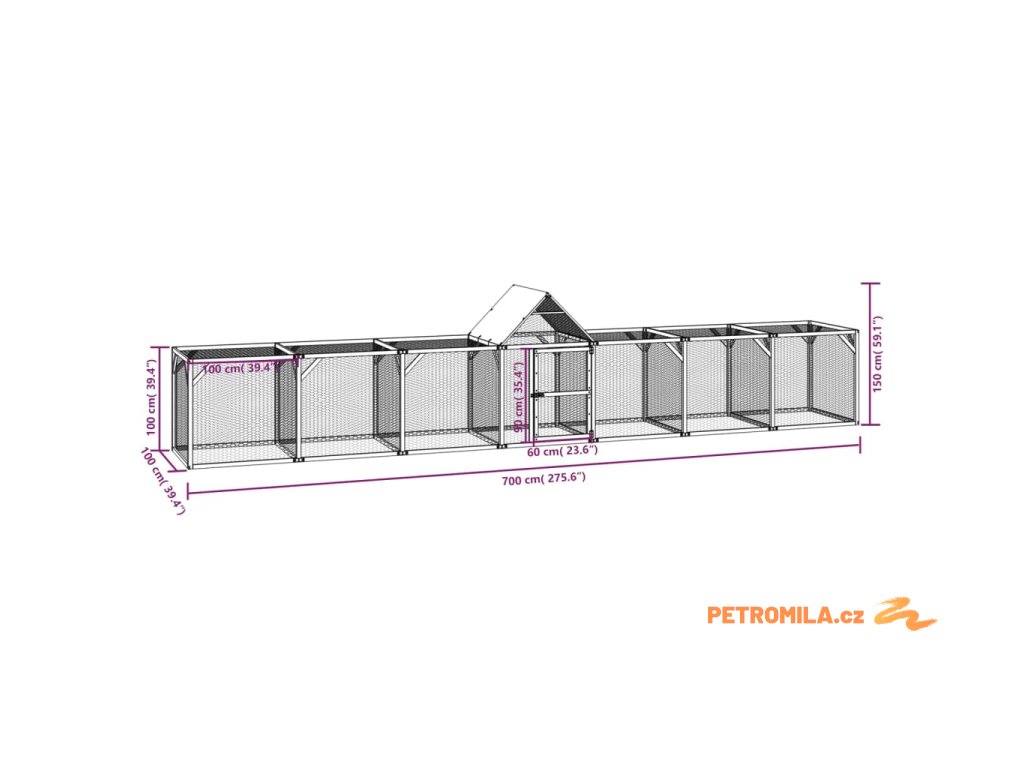 Kurník 700 x 100 x 150 cm impregnované masivní borové dřevo