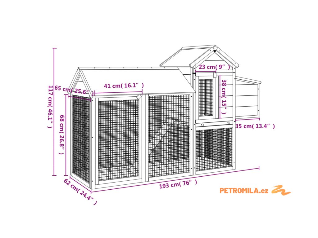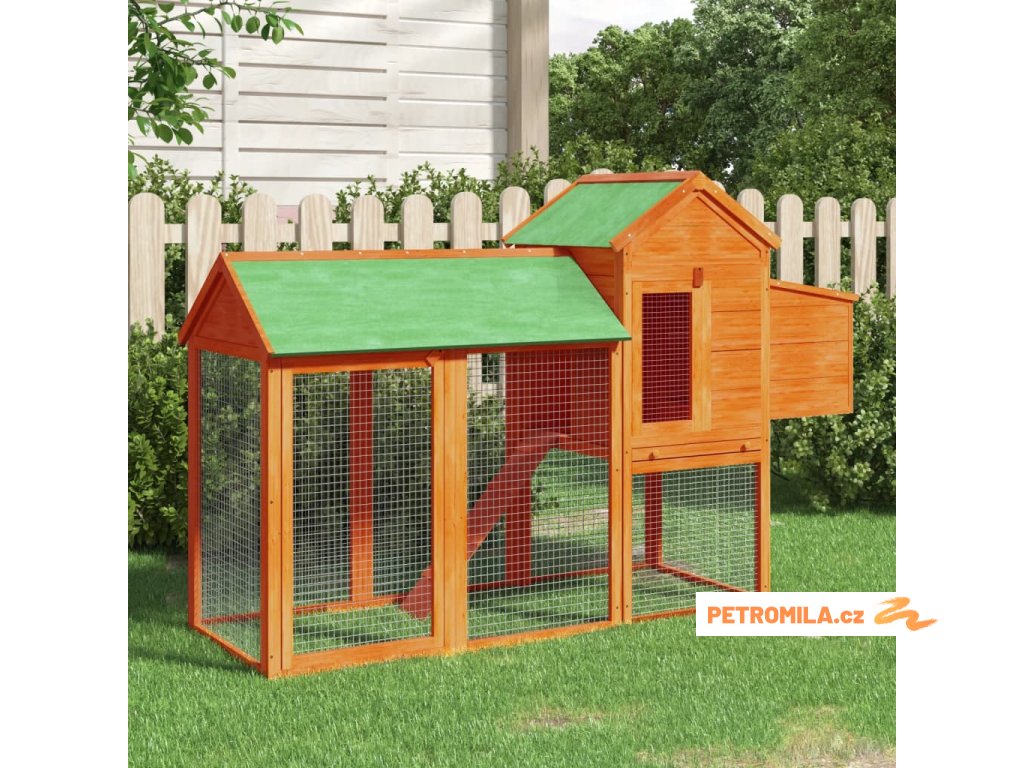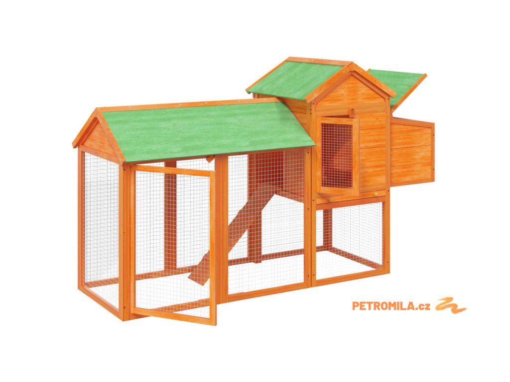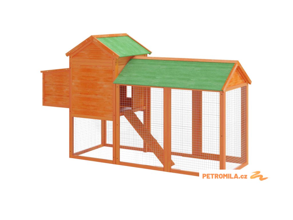 Kurník hnědý 193 x 65 x 117 cm masivní borové dřevo