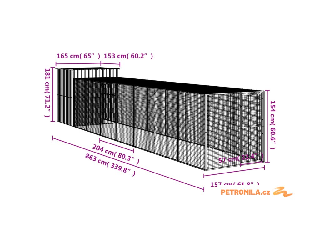 Kurník s výběhem antracitový 165x863x181 cm pozinkovaná ocel
