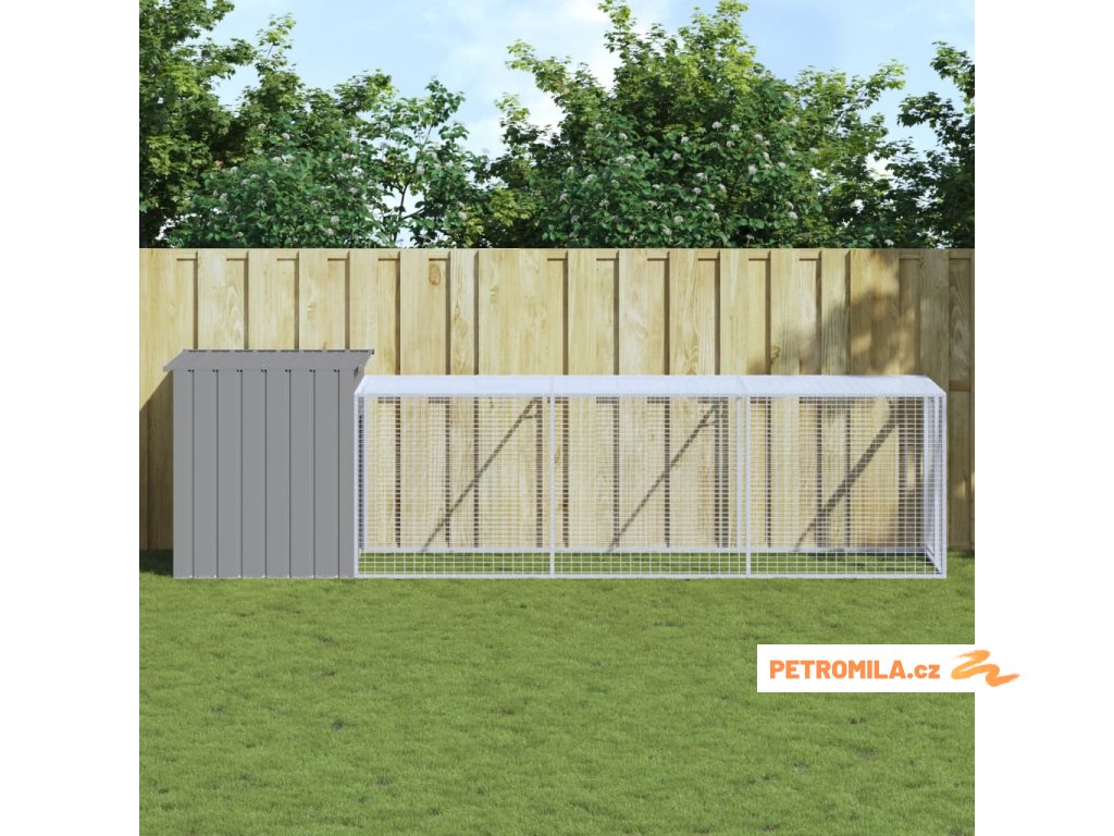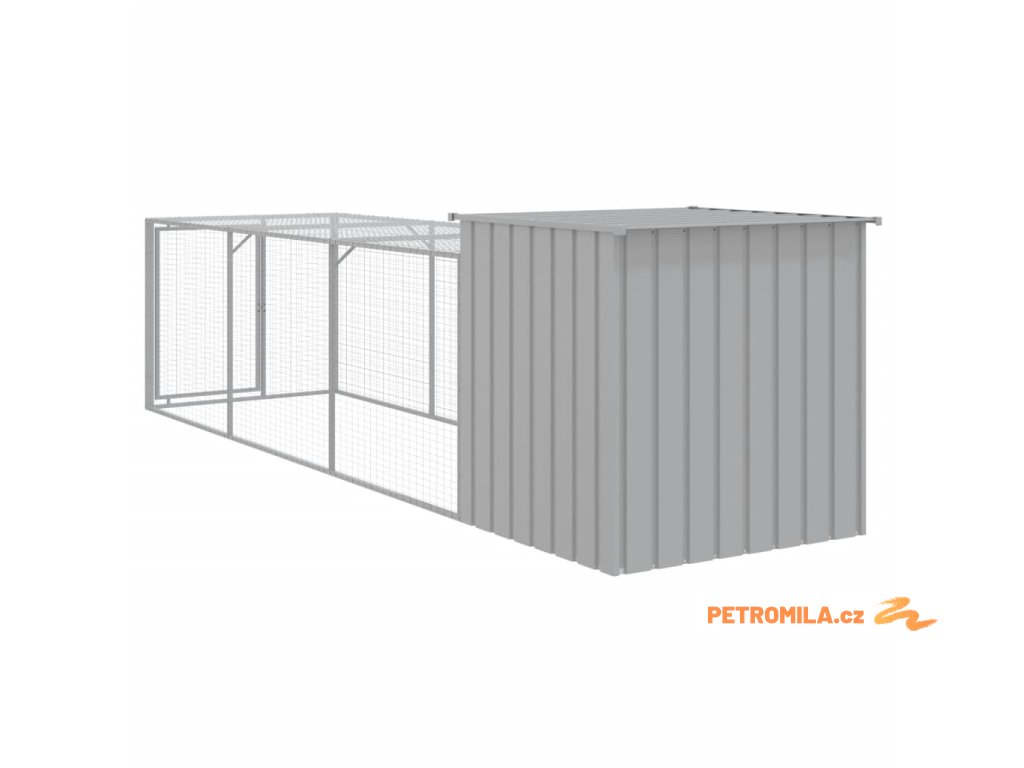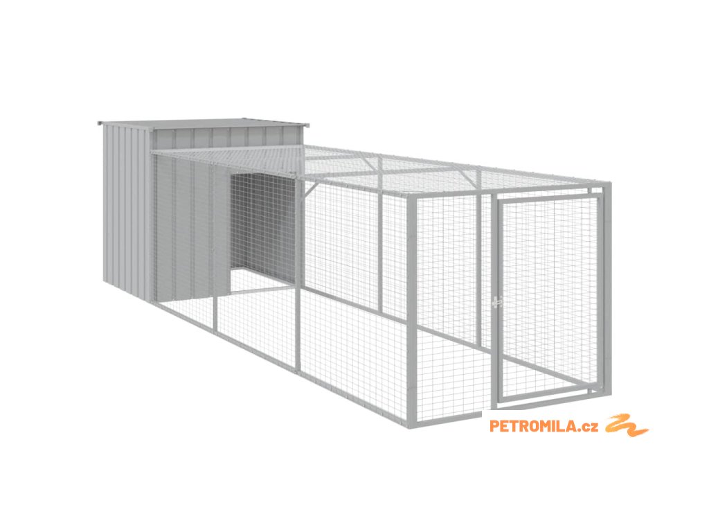 Kurník s výběhem světle šedý 110x405x110 cm pozinkovaná ocel