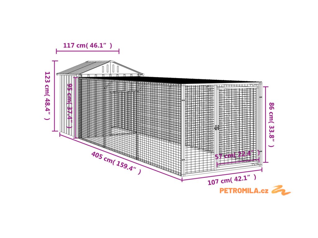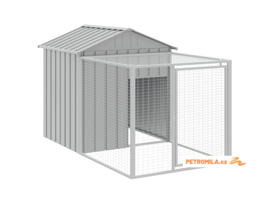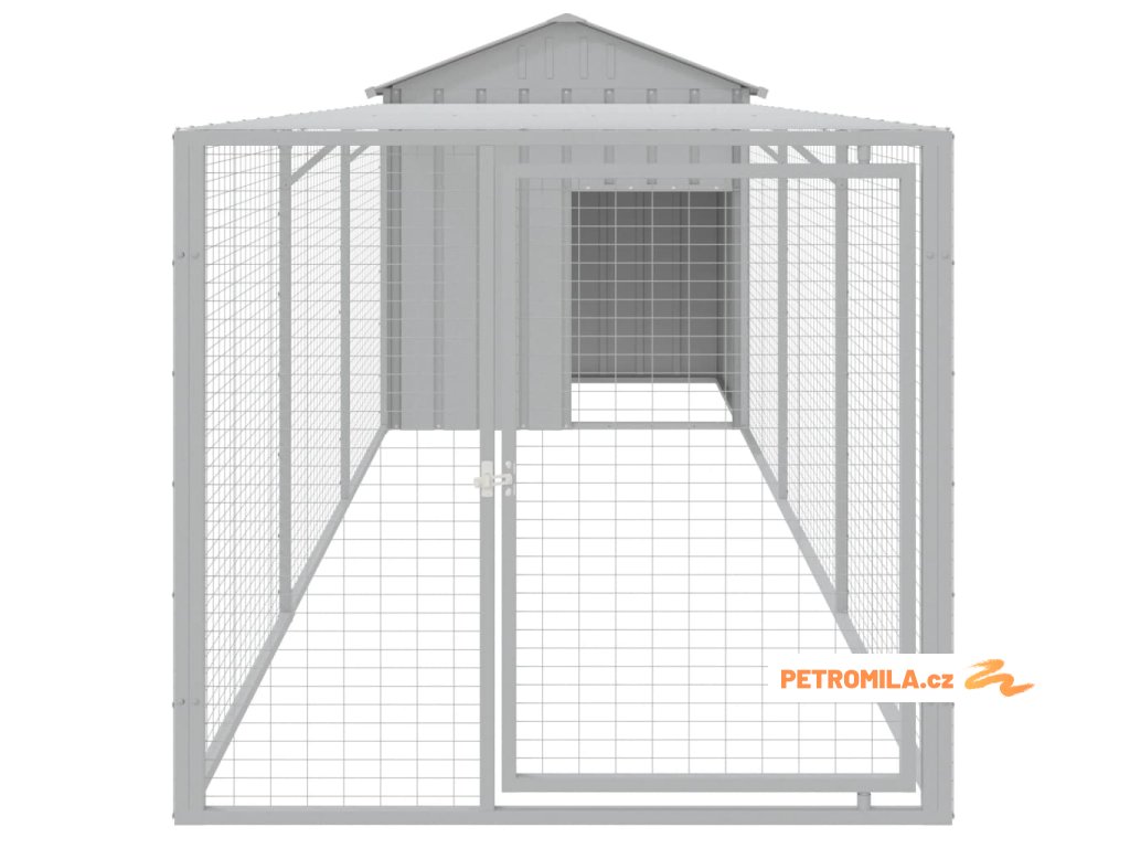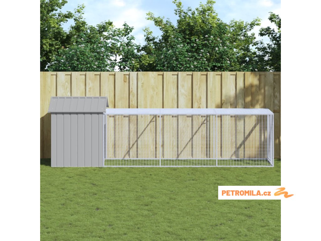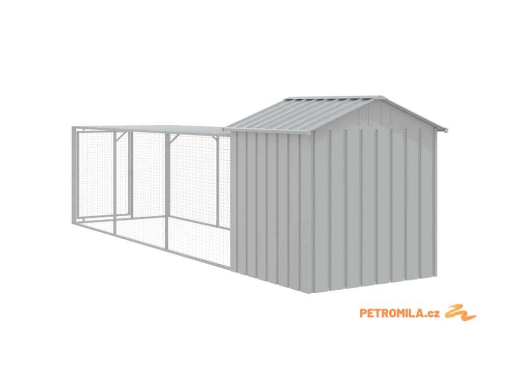 Kurník s výběhem světle šedý 117x405x123 cm pozinkovaná ocel