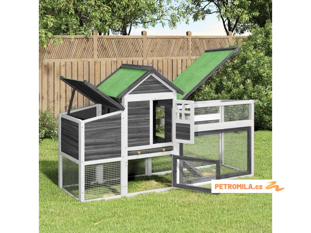 Kurník šedý 186,5 x 58,5 x 113 cm masivní borové dřevo