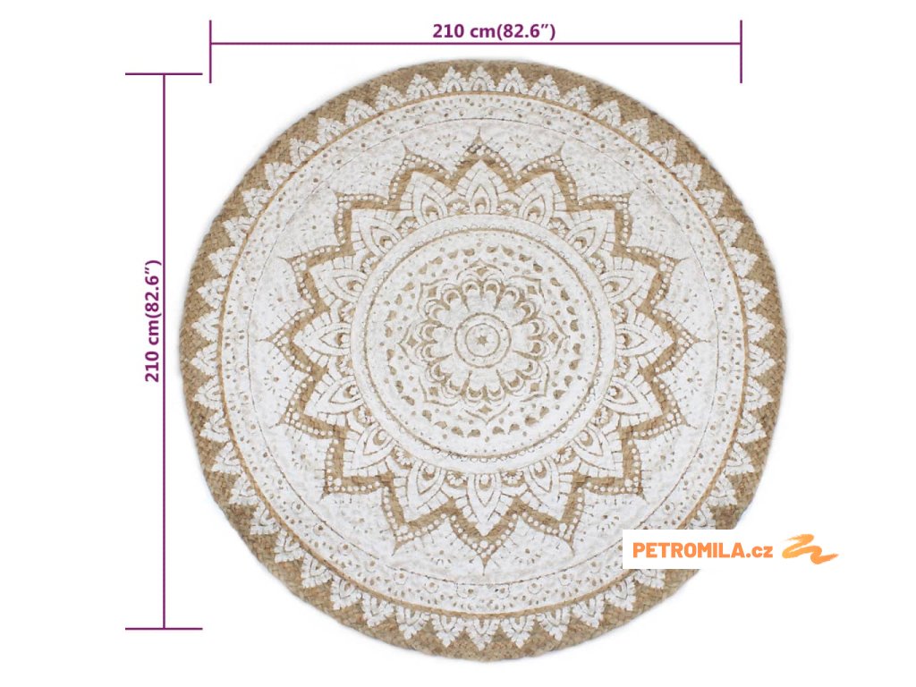 Kusový koberec ze splétané juty s potiskem 210 cm kulatý
