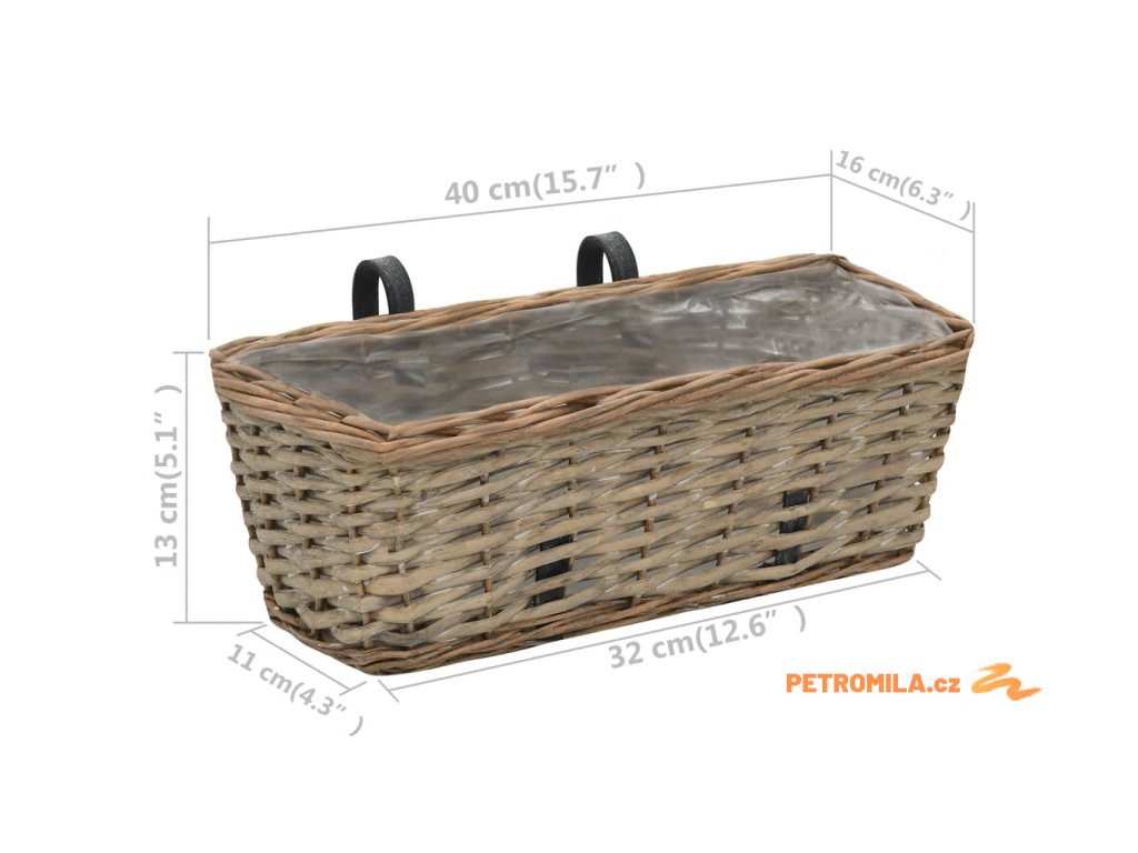 Náš proutěný květináč vám poskytne ideální místo, kam si na balkoně, zahradě či terase můžete zasadit zeleninu, bylinky a květiny. Zahradní květináč na zábradlí je vyrobený z proutí s PE výstelkou a oplývá venkovským a tradičním šarmem. Je vybavený háky, za které ho snadno zavěsíte.