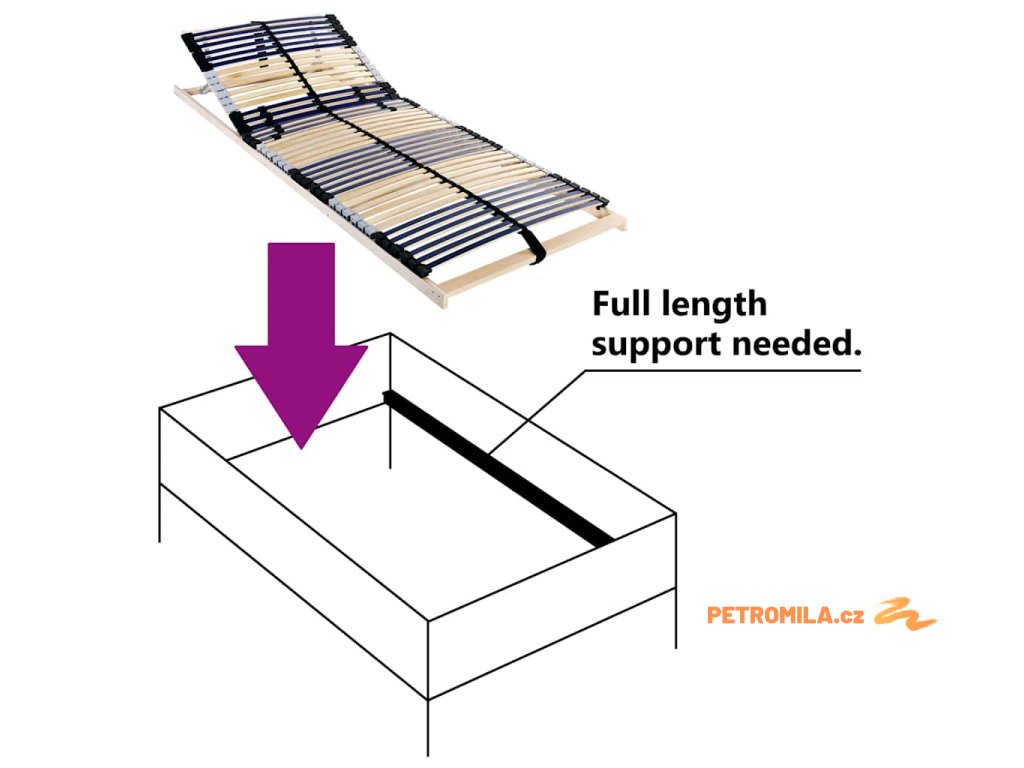 - Pevný lamelový rám Tento rošt poskytuje solidní podporu, která zlepšuje spánek. Lamely rovnoměrně rozkládají váhu pro maximální pohodlí, skvělé pro ty, co mají rádi pevný spací povrch.